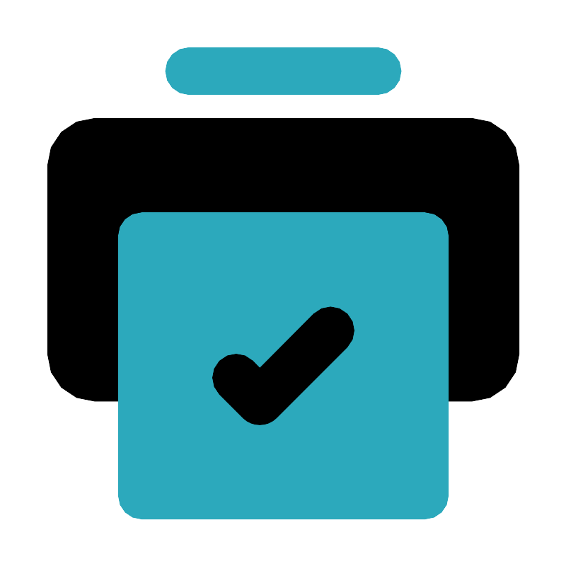<svg fill="#000000" width="800px" height="800px" viewBox="0 0 24 24" id="print-alt-9" data-name="Flat Color" xmlns="http://www.w3.org/2000/svg" class="icon flat-color"><rect id="primary" x="2" y="5" width="20" height="12" rx="2" style="fill: rgb(0, 0, 0);"></rect><path id="secondary" d="M16,4H8A1,1,0,0,1,8,2h8a1,1,0,0,1,0,2Zm2,5H6a1,1,0,0,0-1,1V21a1,1,0,0,0,1,1H18a1,1,0,0,0,1-1V10A1,1,0,0,0,18,9Z" style="fill: rgb(44, 169, 188);"></path><path id="primary-2" data-name="primary" d="M11,18a1,1,0,0,1-.71-.29l-1-1a1,1,0,0,1,1.42-1.42l.29.3,2.29-2.3a1,1,0,0,1,1.42,1.42l-3,3A1,1,0,0,1,11,18Z" style="fill: rgb(0, 0, 0);"></path></svg>