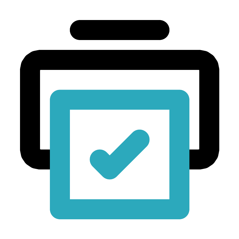 <svg fill="#000000" width="800px" height="800px" viewBox="0 0 24 24" id="print-alt-9" data-name="Line Color" xmlns="http://www.w3.org/2000/svg" class="icon line-color"><path id="primary" d="M6,16H4a1,1,0,0,1-1-1V7A1,1,0,0,1,4,6H20a1,1,0,0,1,1,1v8a1,1,0,0,1-1,1H18" style="fill: none; stroke: rgb(0, 0, 0); stroke-linecap: round; stroke-linejoin: round; stroke-width: 2;"></path><line id="primary-2" data-name="primary" x1="8" y1="3" x2="16" y2="3" style="fill: none; stroke: rgb(0, 0, 0); stroke-linecap: round; stroke-linejoin: round; stroke-width: 2;"></line><rect id="secondary" x="6" y="10" width="12" height="11" style="fill: none; stroke: rgb(44, 169, 188); stroke-linecap: round; stroke-linejoin: round; stroke-width: 2;"></rect><polyline id="secondary-2" data-name="secondary" points="10 16 11 17 14 14" style="fill: none; stroke: rgb(44, 169, 188); stroke-linecap: round; stroke-linejoin: round; stroke-width: 2;"></polyline></svg>