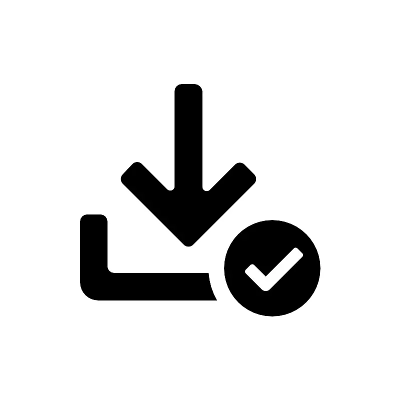 <svg fill="#000000" width="800px" height="800px" viewBox="0 0 100 100" xmlns="http://www.w3.org/2000/svg"><path d="M47.06,61.56a1.59,1.59,0,0,1-1.18-.51L30.68,45.88a1.67,1.67,0,0,1-.51-1.19,1.64,1.64,0,0,1,.51-1.18L33.05,41a1.63,1.63,0,0,1,2.37,0l6.3,6.3a1.12,1.12,0,0,0,1.91-.79V22.69A1.73,1.73,0,0,1,45.32,21h3.37a2,2,0,0,1,1.8,1.68v24a1.12,1.12,0,0,0,.7,1,1.11,1.11,0,0,0,1.22-.24l6.3-6.3a1.63,1.63,0,0,1,1.18-.5,1.65,1.65,0,0,1,1.18.5l2.35,2.37a1.63,1.63,0,0,1,0,2.37L48.24,61.05A1.6,1.6,0,0,1,47.06,61.56Zm5,6.65A15.84,15.84,0,0,0,54.14,75H24.5A4.49,4.49,0,0,1,20,70.5V55.27a1.73,1.73,0,0,1,1.69-1.68h3.39a1.72,1.72,0,0,1,1.68,1.68V66.53a1.72,1.72,0,0,0,1.68,1.68ZM56,67A12,12,0,1,1,68,79,12,12,0,0,1,56,67Zm19.52-2.81-8.07,8.08a1.46,1.46,0,0,1-2.15,0l-3.9-3.91a.69.69,0,0,1,0-1.07l1.07-1.08a.71.71,0,0,1,1.08,0L66.37,69l6.93-6.93a.7.7,0,0,1,1.08,0l1.07,1.08A.66.66,0,0,1,75.52,64.19Z" fill-rule="evenodd"/></svg>