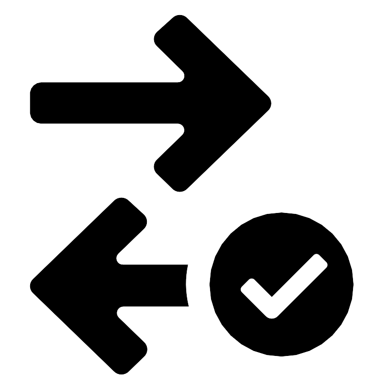 <svg fill="#000000" width="800px" height="800px" viewBox="0 0 52 52" xmlns="http://www.w3.org/2000/svg"><path d="M23,2.42a1.37,1.37,0,0,1,2,0l10.77,10.4a1.3,1.3,0,0,1,0,1.94L25,25.16a1.37,1.37,0,0,1-2,0l-2-1.94a1.28,1.28,0,0,1,0-1.94L24.37,18a.9.9,0,0,0-.66-1.53H5.46A1.47,1.47,0,0,1,4,15.11V12.33A1.53,1.53,0,0,1,5.46,11H23.71a.89.89,0,0,0,.66-1.53L21,6.16a1.28,1.28,0,0,1,0-1.94Zm-5.8,24.42a1.38,1.38,0,0,0-2,0L4.44,37.24a1.28,1.28,0,0,0,0,1.94L15.2,49.58a1.38,1.38,0,0,0,2,0l2-1.94a1.3,1.3,0,0,0,0-1.94l-3.37-3.26a.89.89,0,0,1,.66-1.52h8.68A13.4,13.4,0,0,1,24.8,38a12.68,12.68,0,0,1,.27-2.63H16.45a.88.88,0,0,1-.66-1.53l3.37-3.26a1.3,1.3,0,0,0,0-1.94ZM28,38a9.6,9.6,0,1,1,9.6,9.6A9.6,9.6,0,0,1,28,38Zm15.62-2.24-6.46,6.45a1.15,1.15,0,0,1-.86.38,1.14,1.14,0,0,1-.86-.38l-3.12-3.12a.56.56,0,0,1,0-.86l.86-.86a.56.56,0,0,1,.86,0l2.26,2.26,5.54-5.54a.56.56,0,0,1,.86,0l.86.86A.55.55,0,0,1,43.62,35.76Z" fill-rule="evenodd"/></svg>