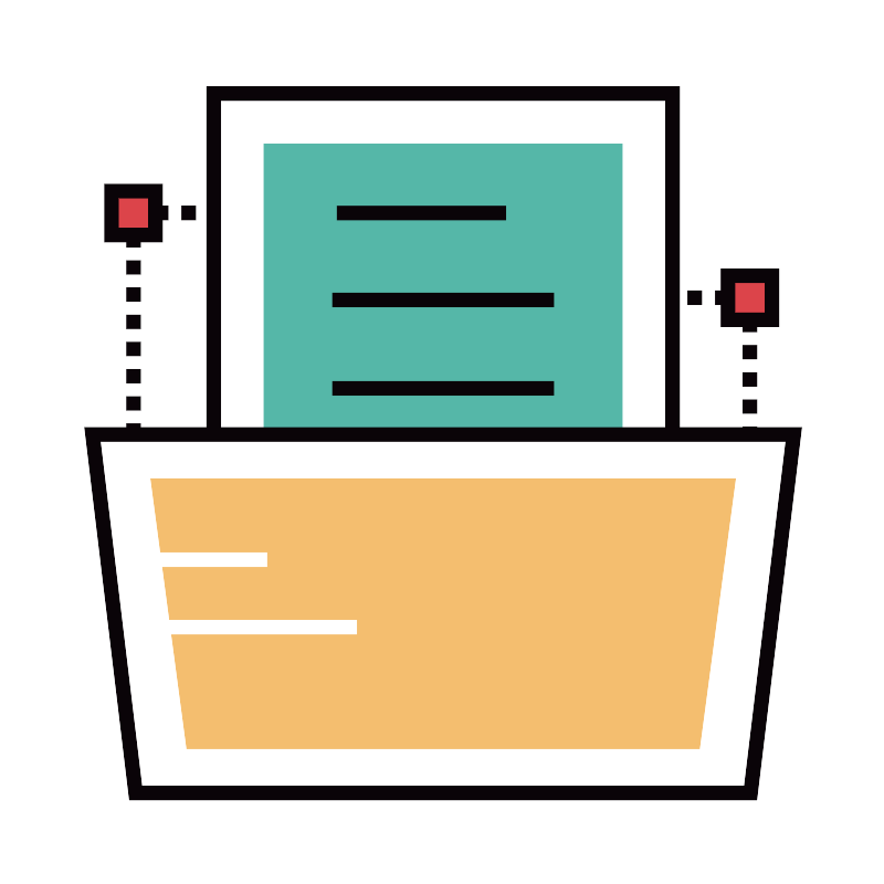 <svg width="800px" height="800px" viewBox="0 0 1024 1024" class="icon" version="1.1" xmlns="http://www.w3.org/2000/svg"><path d="M401.9 584.7h16v16h-16zM385.9 600.7h-16v-16h16v16z m-31.9 0h-16v-16h16v16z m-32 0h-16v-16h16v16z m-32 0h-16v-16h16v16z m-32 0h-16v-16h16v16z m-32 0h-16v-16h16v16z m-31.9 0h-16v-16h16v16zM146.1 584.7h16v16h-16zM162.1 569h-16v-15.7h16V569z m0-31.5h-16v-15.7h16v15.7z m0-31.5h-16v-15.7h16V506z m0-31.5h-16v-15.7h16v15.7z m0-31.5h-16v-15.7h16V443z m0-31.5h-16v-15.7h16v15.7z m0-31.5h-16v-15.7h16V380z m0-31.5h-16v-15.7h16v15.7z m0-31.5h-16v-15.7h16V317z m0-31.4h-16v-15.7h16v15.7zM146.1 238.1h16v16h-16zM385.9 254.1h-16v-16h16v16z m-31.9 0h-16v-16h16v16z m-32 0h-16v-16h16v16z m-32 0h-16v-16h16v16z m-32 0h-16v-16h16v16z m-32 0h-16v-16h16v16z m-31.9 0h-16v-16h16v16zM401.9 238.1h16v16h-16zM417.9 569h-16v-15.7h16V569z m0-31.5h-16v-15.7h16v15.7z m0-31.5h-16v-15.7h16V506z m0-31.5h-16v-15.7h16v15.7z m0-31.5h-16v-15.7h16V443z m0-31.5h-16v-15.7h16v15.7z m0-31.5h-16v-15.7h16V380z m0-31.5h-16v-15.7h16v15.7z m0-31.5h-16v-15.7h16V317z m0-31.4h-16v-15.7h16v15.7zM860.1 682.9h16v16h-16zM844.2 698.9h-16v-16h16v16z m-32 0h-16v-16h16v16z m-32 0h-16v-16h16v16z m-32 0h-16v-16h16v16z m-32 0h-16v-16h16v16z m-31.9 0h-16v-16h16v16z m-32 0h-16v-16h16v16zM604.3 682.9h16v16h-16zM620.3 667.1h-16v-15.7h16v15.7z m0-31.4h-16V620h16v15.7z m0-31.5h-16v-15.7h16v15.7z m0-31.5h-16V557h16v15.7z m0-31.5h-16v-15.7h16v15.7z m0-31.5h-16V494h16v15.7z m0-31.5h-16v-15.7h16v15.7z m0-31.5h-16V431h16v15.7z m0-31.5h-16v-15.7h16v15.7z m0-31.5h-16V368h16v15.7zM604.3 336.2h16v16h-16zM844.2 352.2h-16v-16h16v16z m-32 0h-16v-16h16v16z m-32 0h-16v-16h16v16z m-32 0h-16v-16h16v16z m-32 0h-16v-16h16v16z m-31.9 0h-16v-16h16v16z m-32 0h-16v-16h16v16zM860.1 336.2h16v16h-16zM876.1 667.1h-16v-15.7h16v15.7z m0-31.4h-16V620h16v15.7z m0-31.5h-16v-15.7h16v15.7z m0-31.5h-16V557h16v15.7z m0-31.5h-16v-15.7h16v15.7z m0-31.5h-16V494h16v15.7z m0-31.5h-16v-15.7h16v15.7z m0-31.5h-16V431h16v15.7z m0-31.5h-16v-15.7h16v15.7z m0-31.5h-16V368h16v15.7z" fill="#0A0408" /><path d="M246.9 107.8h531.6v531.6H246.9z" fill="#FFFFFF" /><path d="M786.5 647.4H238.9V99.8h547.6v547.6z m-531.6-16h515.6V115.8H254.9v515.6z" fill="#0A0408" /><path d="M305.1 166h415.1v415.1H305.1z" fill="#55B7A8" /><path d="M389.9 238.2h195.3v16H389.9zM384.6 338.8h256.2v16H384.6zM384.6 441.2h256.2v16H384.6z" fill="#0A0408" /><path d="M868.8 918H156.5l-50-415.4h812.3z" fill="#FFFFFF" /><path d="M875.9 926H149.4L97.5 494.6h830.4l-52 431.4z m-712.3-16h698.1l48.1-399.4H115.5L163.6 910z" fill="#0A0408" /><path d="M809.6 866.5H215.8L174.1 554h677.2z" fill="#F4BE6F" /><path d="M154.1 639.7h154.3v16H154.1zM154.1 717.9h258.3v16H154.1z" fill="#FFFFFF" /><path d="M842.7 318.8h50.9v50.9h-50.9z" fill="#DC444A" /><path d="M901.6 377.7h-66.9v-66.9h66.9v66.9z m-50.9-16h34.9v-34.9h-34.9v34.9z" fill="#0A0408" /><path d="M128.6 220.8h50.9v50.9h-50.9z" fill="#DC444A" /><path d="M187.5 279.7h-66.9v-66.9h66.9v66.9z m-50.9-16h34.9v-34.9h-34.9v34.9z" fill="#0A0408" /></svg>