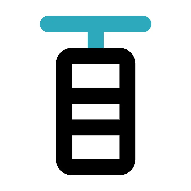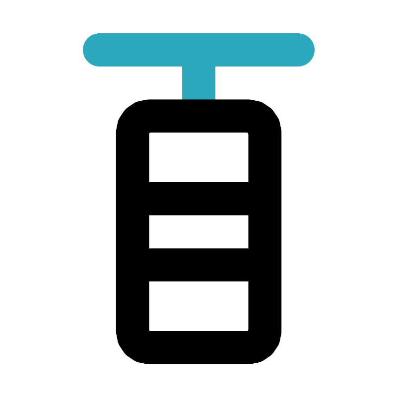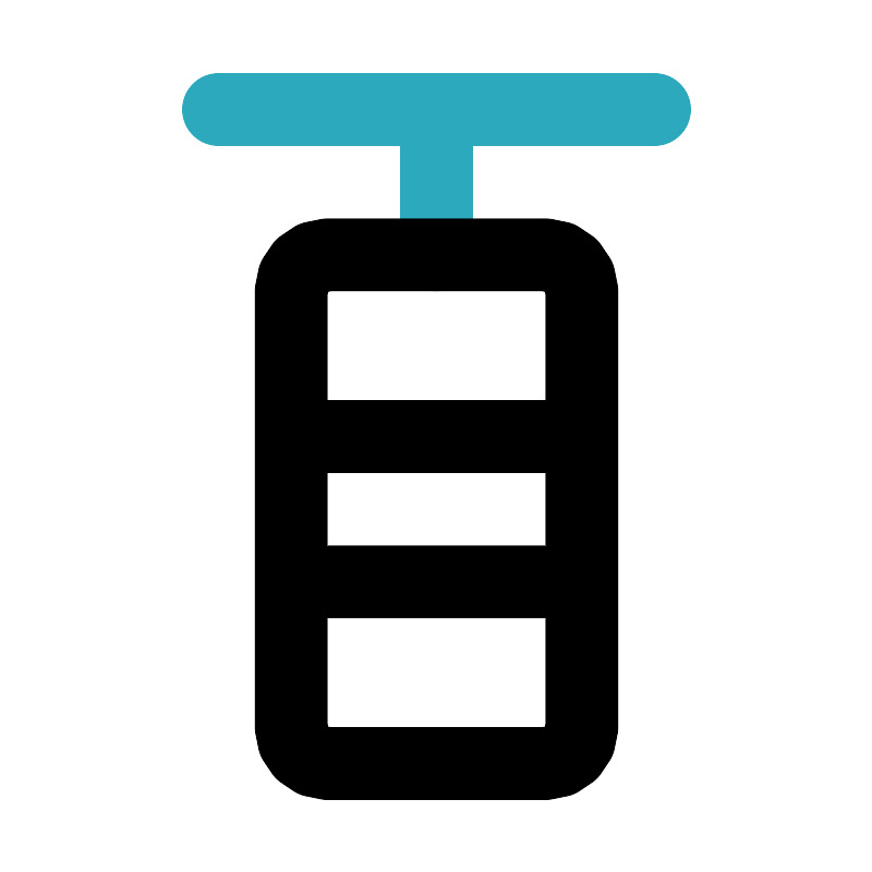 <svg fill="#000000" width="800px" height="800px" viewBox="0 0 24 24" id="punching-bag" data-name="Line Color" xmlns="http://www.w3.org/2000/svg" class="icon line-color"><path id="secondary" d="M6,3H18M12,3V7" style="fill: none; stroke: rgb(44, 169, 188); stroke-linecap: round; stroke-linejoin: round; stroke-width: 2;"></path><path id="primary" d="M15,21H9a1,1,0,0,1-1-1V8A1,1,0,0,1,9,7h6a1,1,0,0,1,1,1V20A1,1,0,0,1,15,21Zm1-9H8v4h8Z" style="fill: none; stroke: rgb(0, 0, 0); stroke-linecap: round; stroke-linejoin: round; stroke-width: 2;"></path></svg>
