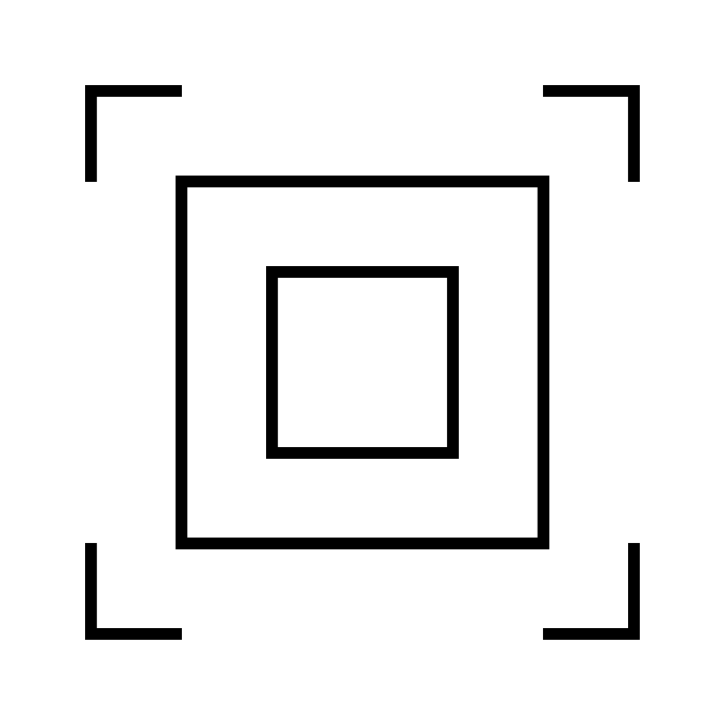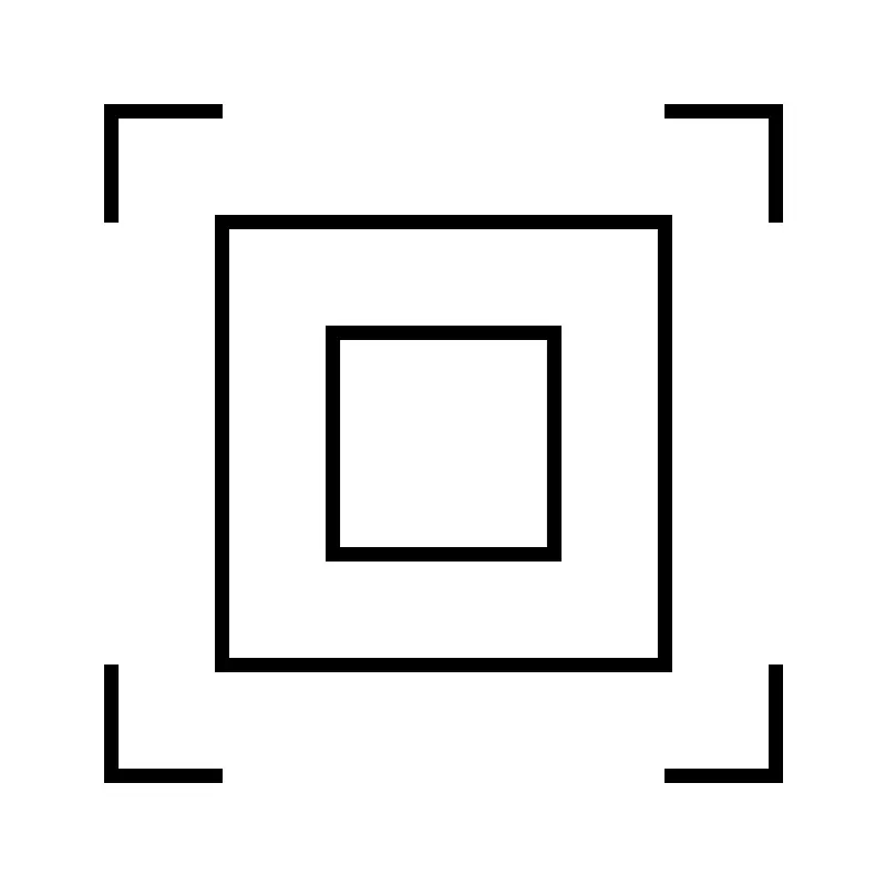 <svg width="800px" height="800px" viewBox="0 0 64 64" xmlns="http://www.w3.org/2000/svg" fill="none" stroke="#000000"><polyline points="16 56 8 56 8 48"/><polyline points="56 48 56 56 48 56"/><polyline points="48 8 56 8 56 16"/><polyline points="8 16 8 8 16 8"/><rect x="16" y="16" width="32" height="32"/><rect x="24" y="24" width="16" height="16"/></svg>