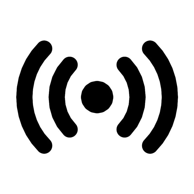 <svg width="800px" height="800px" viewBox="0 0 24 24" role="img" xmlns="http://www.w3.org/2000/svg" aria-labelledby="radioIconTitle" stroke="#000000" stroke-width="2" stroke-linecap="round" stroke-linejoin="round" fill="none" color="#000000"> <title id="radioIconTitle">Radio</title> <path d="M5.44972845 6C2.18342385 9.2663046 2.18342385 14.7336954 5.44972845 18M8.59918369 8C6.46693877 10.1322449 6.46693877 13.8677551 8.59918369 16M18.5502716 18C21.8165761 14.7336954 21.8165761 9.2663046 18.5502716 6M15.4008163 16C17.5330612 13.8677551 17.5330612 10.1322449 15.4008163 8"/> <circle cx="12" cy="12" r="1"/> </svg>