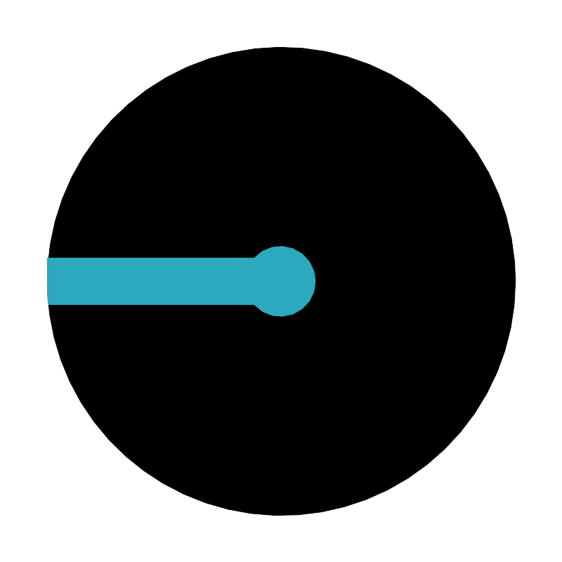 <svg fill="#000000" width="800px" height="800px" viewBox="0 0 24 24" id="radius-circle-2" data-name="Flat Color" xmlns="http://www.w3.org/2000/svg" class="icon flat-color"><circle id="primary" cx="12" cy="12" r="10" style="fill: rgb(0, 0, 0);"></circle><path id="secondary" d="M2,12c0-.34,0-.67,0-1h8.84a1.5,1.5,0,1,1,0,2H2.05C2,12.67,2,12.34,2,12Z" style="fill: rgb(44, 169, 188);"></path></svg>