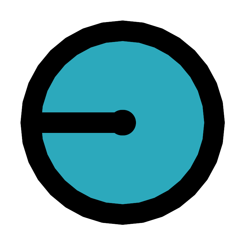 <svg fill="#000000" width="800px" height="800px" viewBox="0 0 24 24" id="radius-circle-2" data-name="Flat Line" xmlns="http://www.w3.org/2000/svg" class="icon flat-line"><circle id="secondary" cx="12" cy="12" r="9" style="fill: rgb(44, 169, 188); stroke-width: 2;"></circle><line id="primary-upstroke" x1="12.05" y1="12" x2="11.95" y2="12" style="fill: none; stroke: rgb(0, 0, 0); stroke-linecap: round; stroke-linejoin: round; stroke-width: 2.5;"></line><path id="primary" d="M3,12h9m0,9a9,9,0,1,0-9-9A9,9,0,0,0,12,21Z" style="fill: none; stroke: rgb(0, 0, 0); stroke-linecap: round; stroke-linejoin: round; stroke-width: 2;"></path></svg>