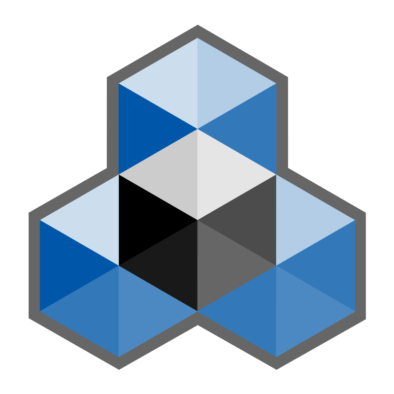 <svg width="800px" height="800px" viewBox="0 0 32 32" xmlns="http://www.w3.org/2000/svg"><title>file_type_rake</title><polygon points="16.043 2 23.357 6.249 23.358 13.62 29.677 17.262 29.677 25.902 22.441 30 16.043 26.368 9.646 30 2.323 25.818 2.323 17.262 8.663 13.639 8.672 6.259 16.043 2" style="fill:#666"/><polyline points="16.019 3.07 16.019 10.469 9.621 6.769" style="fill:#cde"/><polyline points="22.417 6.769 16.019 10.469 16.019 3.07" style="fill:#b2cde5"/><polyline points="22.417 6.769 22.417 14.169 16.019 10.469" style="fill:#3379ba"/><polyline points="9.621 6.769 9.621 14.169 16.019 10.469" style="fill:#0057a9"/><polyline points="16.019 10.469 16.019 17.869 9.621 14.169" style="fill:#ccc"/><polyline points="16.022 10.469 16.019 17.869 22.417 14.172" style="fill:#e5e5e5"/><polyline points="22.417 14.169 22.417 21.569 16.019 17.869" style="fill:#4c4c4c"/><polyline points="9.621 14.169 9.621 21.569 16.019 17.869"/><polyline points="16.019 17.869 16.019 25.269 9.621 21.569" style="fill:#191919"/><polyline points="16.022 17.869 16.019 25.269 22.417 21.572" style="fill:#666"/><polyline points="9.621 14.169 9.621 21.569 3.224 17.869" style="fill:#cde"/><polyline points="3.224 17.869 3.224 25.269 9.621 21.569" style="fill:#0057a9"/><polyline points="9.621 21.569 9.621 28.969 3.224 25.269" style="fill:#3379ba"/><polyline points="9.624 21.569 9.621 28.969 16.019 25.272" style="fill:#4c89c3"/><polyline points="28.815 17.872 22.417 21.569 22.42 14.169" style="fill:#b2cde5"/><polyline points="28.815 17.869 28.815 25.269 22.417 21.569" style="fill:#3379ba"/><polyline points="22.417 21.569 22.417 28.969 16.019 25.269" style="fill:#3379ba"/><polyline points="22.42 21.569 22.417 28.969 28.815 25.272" style="fill:#4c89c3"/></svg>
