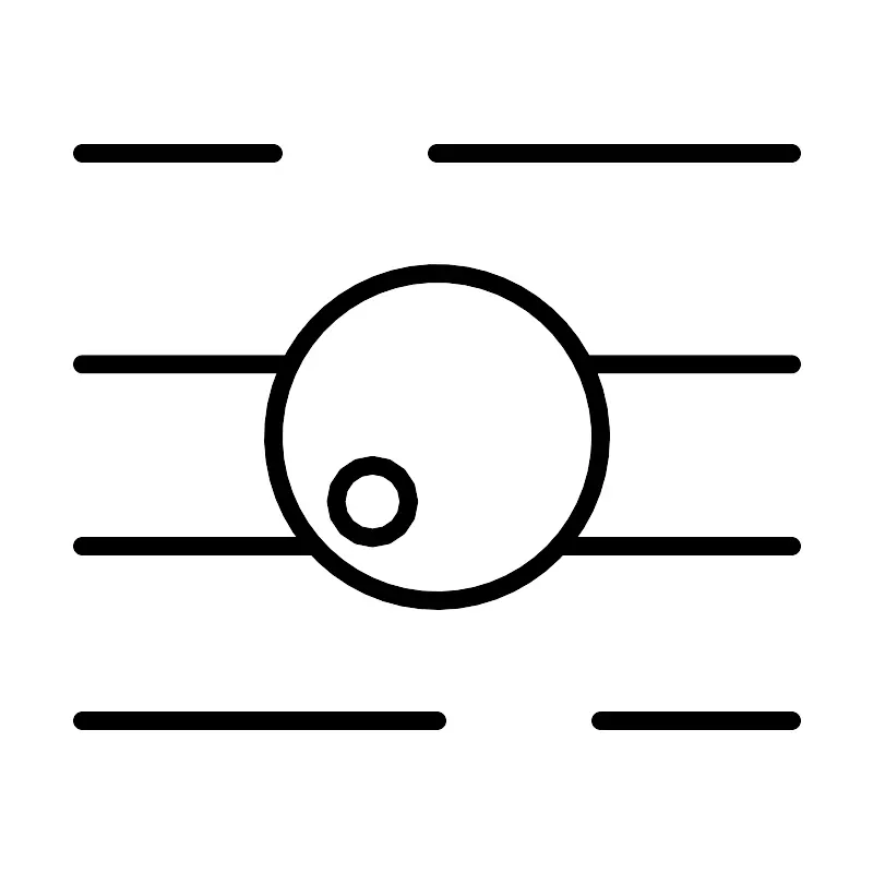 <svg width="800px" height="800px" viewBox="0 0 48 48" xmlns="http://www.w3.org/2000/svg"><defs><style>.a{fill:none;stroke:#000000;stroke-linecap:round;stroke-linejoin:round;}</style></defs><circle class="a" cx="24" cy="24" r="9"/><circle class="a" cx="20.45" cy="27.55" r="2"/><line class="a" x1="32.06" y1="20" x2="43.5" y2="20"/><line class="a" x1="4.5" y1="20" x2="15.94" y2="20"/><line class="a" x1="30.7" y1="30" x2="43.5" y2="30"/><line class="a" x1="4.5" y1="30" x2="17.29" y2="30"/><line class="a" x1="4.5" y1="39.6" x2="24" y2="39.6"/><line class="a" x1="33" y1="39.6" x2="43.5" y2="39.6"/><line class="a" x1="43.5" y1="8.4" x2="24" y2="8.4"/><line class="a" x1="15" y1="8.4" x2="4.5" y2="8.4"/></svg>