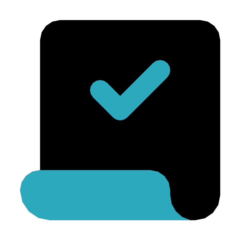 <svg fill="#000000" width="800px" height="800px" viewBox="0 0 24 24" id="receipt-check" data-name="Flat Color" xmlns="http://www.w3.org/2000/svg" class="icon flat-color"><path id="primary" d="M20,2H6A2,2,0,0,0,4,4V17H4a2,2,0,0,0-2,2H2a3,3,0,0,0,3,3H19.5A2.5,2.5,0,0,0,22,19.5V4A2,2,0,0,0,20,2Z" style="fill: rgb(0, 0, 0);"></path><path id="secondary" d="M19,22v0H5a3,3,0,0,1-3-3H2a2,2,0,0,1,2-2H15a2,2,0,0,1,2,2v.5A2.52,2.52,0,0,0,19,22ZM12.71,11.71l4-4a1,1,0,1,0-1.42-1.42L12,9.59l-1.29-1.3A1,1,0,0,0,9.29,9.71l2,2a1,1,0,0,0,1.42,0Z" style="fill: rgb(44, 169, 188);"></path></svg>