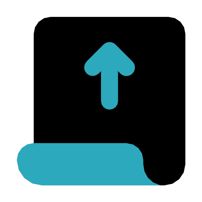<svg fill="#000000" width="800px" height="800px" viewBox="0 0 24 24" id="receipt-up" data-name="Flat Color" xmlns="http://www.w3.org/2000/svg" class="icon flat-color"><path id="primary" d="M20,2H6A2,2,0,0,0,4,4V17H4a2,2,0,0,0-2,2H2a3,3,0,0,0,3,3H19.5A2.5,2.5,0,0,0,22,19.5V4A2,2,0,0,0,20,2Z" style="fill: rgb(0, 0, 0);"></path><path id="secondary" d="M19,22v0H5a3,3,0,0,1-3-3H2a2,2,0,0,1,2-2H15a2,2,0,0,1,2,2v.5A2.52,2.52,0,0,0,19,22ZM15.71,7.29l-2-2a1,1,0,0,0-1.42,0l-2,2a1,1,0,0,0,1.42,1.42l.29-.3V12a1,1,0,0,0,2,0V8.41l.29.3a1,1,0,0,0,1.42,0A1,1,0,0,0,15.71,7.29Z" style="fill: rgb(44, 169, 188);"></path></svg>