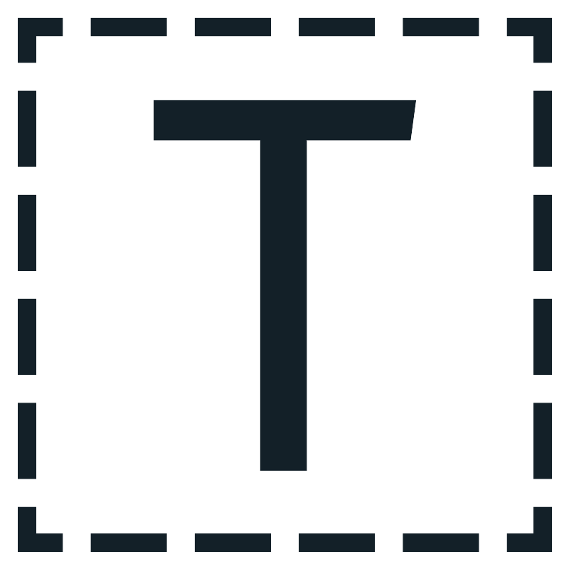 <svg width="800px" height="800px" viewBox="0 0 512 512" xmlns="http://www.w3.org/2000/svg" xmlns:xlink="http://www.w3.org/1999/xlink" aria-hidden="true" role="img" class="iconify iconify--fxemoji" preserveAspectRatio="xMidYMid meet"><path fill="#132028" d="M496 496h-40v-16h24v-24h16v40zm-65.532-16h-68.085v16h68.085v-16zm-93.617 0h-68.085v16h68.085v-16zm-93.617 0h-68.085v16h68.085v-16zm-93.617 0H81.532v16h68.085v-16zM56 480H32v-24H16v40h40v-16zM32 362.383H16v68.085h16v-68.085zm0-93.617H16v68.085h16v-68.085zm0-93.618H16v68.085h16v-68.085zm0-93.616H16v68.085h16V81.532zM32 32h24V16H16v40h16V32zm398.468-16h-68.085v16h68.085V16zm-93.617 0h-68.085v16h68.085V16zm-93.617 0h-68.085v16h68.085V16zm-93.617 0H81.532v16h68.085V16zM496 16h-40v16h24v24h16V16zm0 346.383h-16v68.085h16v-68.085zm0-93.617h-16v68.085h16v-68.085zm0-93.617h-16v68.085h16v-68.085zm0-93.617h-16v68.085h16V81.532z"></path><path fill="#132028" d="M369.013 125.815h-93.411v297.172h-41.623V125.815h-95.832V90h235.706z"></path></svg>