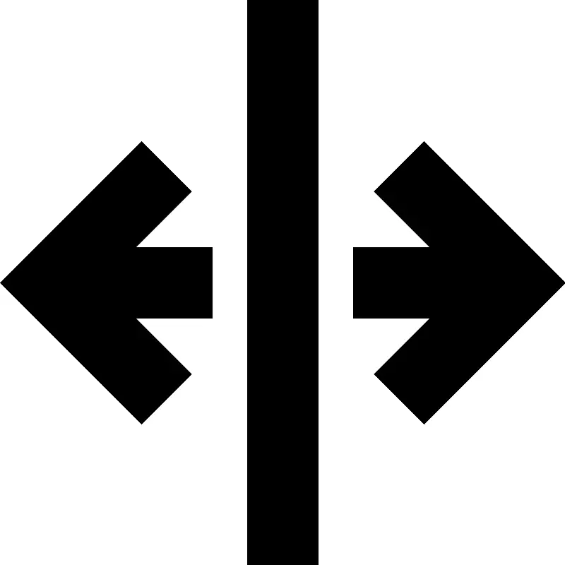 <path d="M6.999,16h2.002V0H6.999V16z M5.414,5.414L4,4L0,8l4,4l1.414-1.414L3.828,9H6V7H3.828L5.414,5.414z M12,4l-1.414,1.414 L12.172,7H10v2h2.172l-1.586,1.586L12,12l4-4L12,4z" />