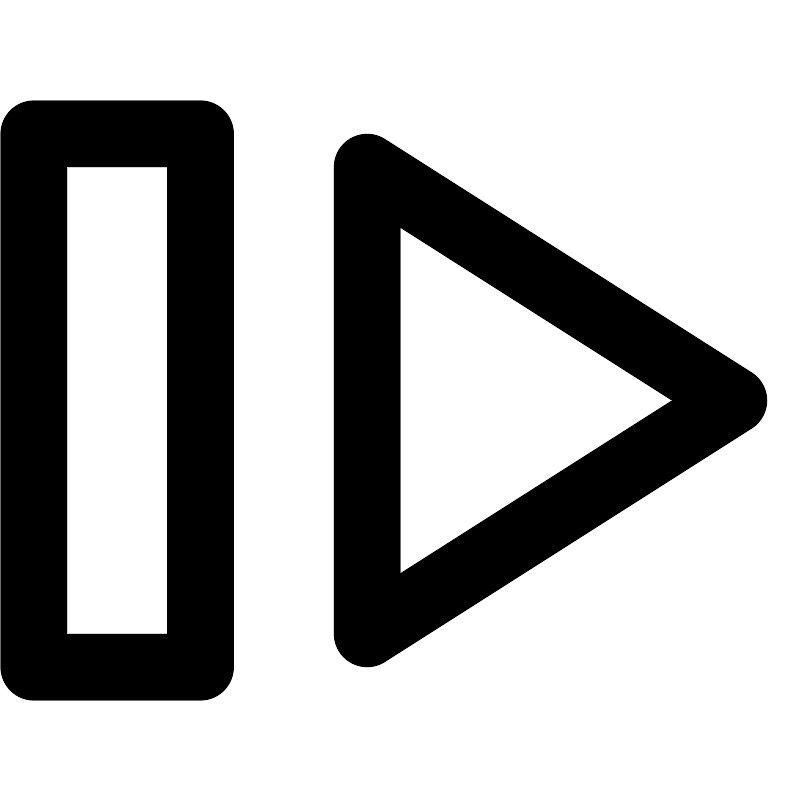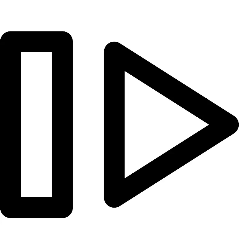 <path fill="none" stroke="#000000" stroke-width="2" d="M1,20 L6,20 L6,4 L1,4 L1,20 Z M11,19.0000002 L22,12 L11,5 L11,19.0000002 Z"/>
