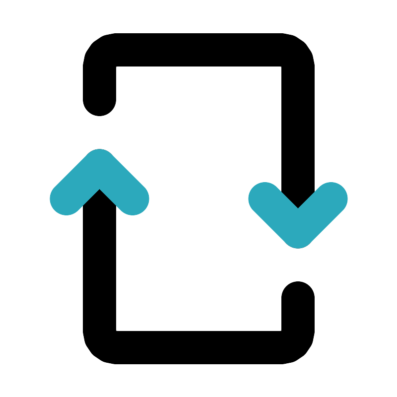 <svg fill="#000000" width="800px" height="800px" viewBox="0 0 24 24" id="retweet-2" data-name="Line Color" xmlns="http://www.w3.org/2000/svg" class="icon line-color"><path id="primary" d="M18,14V4a1,1,0,0,0-1-1H7A1,1,0,0,0,6,4V6" style="fill: none; stroke: rgb(0, 0, 0); stroke-linecap: round; stroke-linejoin: round; stroke-width: 2;"></path><path id="primary-2" data-name="primary" d="M6,10V20a1,1,0,0,0,1,1H17a1,1,0,0,0,1-1V18" style="fill: none; stroke: rgb(0, 0, 0); stroke-linecap: round; stroke-linejoin: round; stroke-width: 2;"></path><polyline id="secondary" points="20 12 18 14 16 12" style="fill: none; stroke: rgb(44, 169, 188); stroke-linecap: round; stroke-linejoin: round; stroke-width: 2;"></polyline><polyline id="secondary-2" data-name="secondary" points="4 12 6 10 8 12" style="fill: none; stroke: rgb(44, 169, 188); stroke-linecap: round; stroke-linejoin: round; stroke-width: 2;"></polyline></svg>