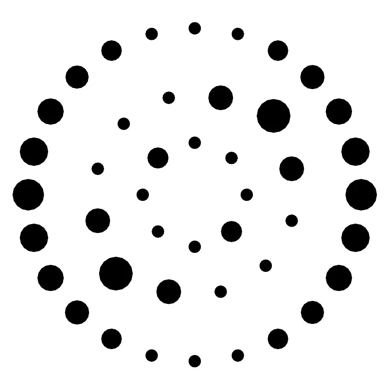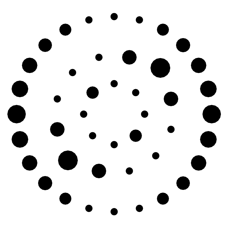 <svg width="800px" height="800px" viewBox="0 0 48 48" xmlns="http://www.w3.org/2000/svg"><defs><style>.a,.c{fill:none;stroke:#000000;}.a{stroke-linecap:round;stroke-linejoin:round;}.b{fill:#000000;}.c{stroke-miterlimit:10;}</style></defs><circle class="a" cx="3.4627" cy="24" r="1.9254"/><circle class="a" cx="44.5373" cy="24" r="1.9254"/><circle class="a" cx="4.1625" cy="29.3154" r="1.7329"/><circle class="a" cx="43.8375" cy="18.6846" r="1.7324"/><circle class="a" cx="6.2142" cy="34.2687" r="1.6046"/><circle class="a" cx="41.7858" cy="13.7313" r="1.6046"/><circle class="a" cx="9.4779" cy="38.5221" r="1.4761"/><circle class="a" cx="38.5221" cy="9.4779" r="1.4761"/><circle class="a" cx="13.7313" cy="41.7858" r="1.2498"/><circle class="a" cx="34.2687" cy="6.2142" r="1.2498"/><circle class="b" cx="18.6846" cy="43.8375" r="0.7499"/><circle class="b" cx="29.3154" cy="4.1625" r="0.7499"/><circle class="b" cx="24" cy="44.5373" r="0.75"/><circle class="b" cx="24" cy="3.4627" r="0.75"/><circle class="b" cx="29.3154" cy="43.8375" r="0.7499"/><circle class="b" cx="18.6846" cy="4.1625" r="0.7497"/><circle class="a" cx="34.2687" cy="41.7858" r="1.2498"/><circle class="a" cx="13.7313" cy="6.2142" r="1.2498"/><circle class="a" cx="38.5221" cy="38.5221" r="1.4119"/><circle class="a" cx="9.4779" cy="9.4779" r="1.4119"/><circle class="a" cx="41.7858" cy="34.2687" r="1.6045"/><circle class="a" cx="6.2142" cy="13.7313" r="1.6046"/><circle class="a" cx="43.8375" cy="29.3154" r="1.7329"/><circle class="a" cx="4.1625" cy="18.6846" r="1.7329"/><circle class="a" cx="14.2685" cy="33.7315" r="2.0644"/><circle class="a" cx="33.7315" cy="14.2685" r="2.0644"/><circle class="b" cx="32.7584" cy="32.7584" r="0.75"/><circle class="b" cx="15.2416" cy="15.2416" r="0.75"/><circle class="b" cx="27.2058" cy="35.9642" r="0.7498"/><circle class="b" cx="20.7942" cy="12.0358" r="0.7498"/><circle class="b" cx="35.9642" cy="27.2058" r="0.7498"/><circle class="b" cx="12.0358" cy="20.7942" r="0.7498"/><circle class="c" cx="35.9642" cy="20.7942" r="1.5137" transform="translate(-4.1701 31.521) rotate(-45)"/><circle class="c" cx="12.0358" cy="27.2058" r="1.5137" transform="translate(-15.7122 16.479) rotate(-45)"/><circle class="c" cx="20.7942" cy="35.9642" r="1.5137" transform="translate(-19.3401 25.2374) rotate(-45)"/><circle class="c" cx="27.2058" cy="12.0358" r="1.5137" transform="translate(-0.5422 22.7626) rotate(-45)"/><circle class="c" cx="28.5382" cy="28.5381" r="1.2836"/><circle class="c" cx="19.4619" cy="19.4618" r="1.2836"/><circle class="b" cx="24" cy="30.4179" r="0.75"/><circle class="b" cx="24" cy="17.5821" r="0.75"/><circle class="b" cx="19.4619" cy="28.5382" r="0.75"/><circle class="b" cx="28.5382" cy="19.4618" r="0.75"/><circle class="b" cx="30.418" cy="24" r="0.75"/><circle class="b" cx="17.5821" cy="24" r="0.75"/></svg>