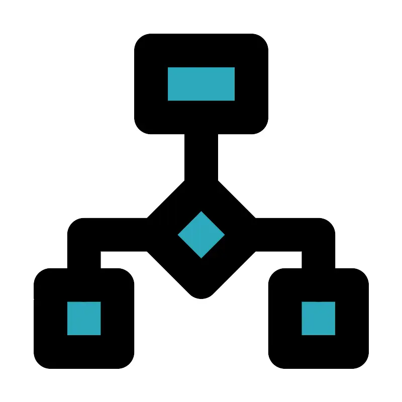 <svg fill="#000000" width="800px" height="800px" viewBox="0 0 24 24" id="roadmap-3" data-name="Flat Line" xmlns="http://www.w3.org/2000/svg" class="icon flat-line"><path id="secondary" d="M15,7V3H9V7Zm6,14V17H17v4ZM3,21H7V17H3Zm9-4.17L14.83,14,12,11.17,9.17,14Z" style="fill: rgb(44, 169, 188); stroke-width: 2;"></path><polyline id="primary" points="15 14 19 14 19 17" style="fill: none; stroke: rgb(0, 0, 0); stroke-linecap: round; stroke-linejoin: round; stroke-width: 2;"></polyline><polyline id="primary-2" data-name="primary" points="5 17 5 14 9 14" style="fill: none; stroke: rgb(0, 0, 0); stroke-linecap: round; stroke-linejoin: round; stroke-width: 2;"></polyline><path id="primary-3" data-name="primary" d="M12,7v4M9,7V3h6V7Zm8,14V17h4v4ZM3,17H7v4H3Zm6.17-3L12,11.17,14.83,14,12,16.83Z" style="fill: none; stroke: rgb(0, 0, 0); stroke-linecap: round; stroke-linejoin: round; stroke-width: 2;"></path></svg>