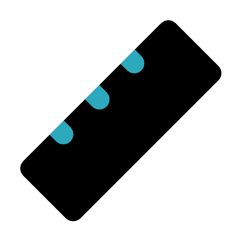 <svg fill="#000000" width="800px" height="800px" viewBox="0 0 24 24" id="ruler-3" data-name="Flat Color" xmlns="http://www.w3.org/2000/svg" class="icon flat-color"><path id="primary" d="M21.71,6.54,17.46,2.29a1,1,0,0,0-1.41,0L2.29,16.05a1,1,0,0,0,0,1.41l4.25,4.25a1,1,0,0,0,.7.29A1,1,0,0,0,8,21.71L21.71,8A1,1,0,0,0,21.71,6.54Z" style="fill: rgb(0, 0, 0);"></path><path id="secondary" d="M5.64,14.12a1,1,0,0,0,1.41-1.41L6.34,12,4.93,13.41Zm3.53-3.53a1,1,0,0,0,1.42,0,1,1,0,0,0,0-1.42l-.71-.71L8.47,9.88Zm3.54-3.54a1,1,0,0,0,1.41-1.41l-.7-.71L12,6.34Z" style="fill: rgb(44, 169, 188);"></path></svg>