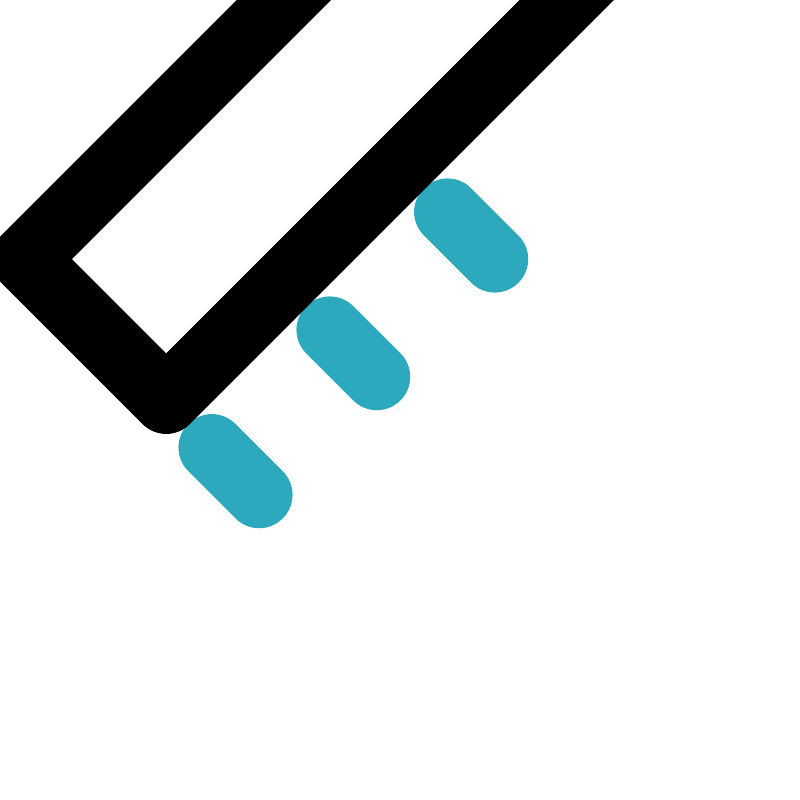 <svg fill="#000000" width="800px" height="800px" viewBox="0 0 24 24" id="ruler-3" data-name="Line Color" xmlns="http://www.w3.org/2000/svg" class="icon line-color"><path id="secondary" d="M13.41,6.34l1.42,1.42M9.88,9.88l1.41,1.41M6.34,13.41l1.42,1.42" style="fill: none; stroke: rgb(44, 169, 188); stroke-linecap: round; stroke-linejoin: round; stroke-width: 2;"></path><rect id="primary" x="2.27" y="9" width="19.46" height="6" transform="translate(-4.97 12) rotate(-45)" style="fill: none; stroke: rgb(0, 0, 0); stroke-linecap: round; stroke-linejoin: round; stroke-width: 2;"></rect></svg>