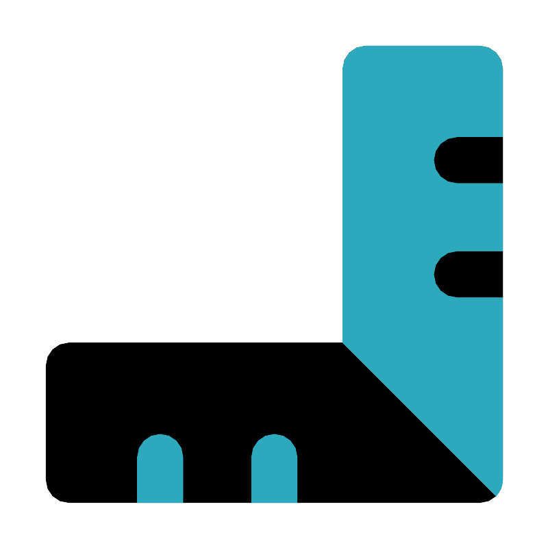 <svg fill="#000000" width="800px" height="800px" viewBox="0 0 24 24" id="ruler-8" data-name="Flat Color" xmlns="http://www.w3.org/2000/svg" class="icon flat-color"><path id="primary" d="M16,2h5a1,1,0,0,1,1,1V21a1,1,0,0,1-1,1H3a1,1,0,0,1-1-1V16a1,1,0,0,1,1-1H15V3A1,1,0,0,1,16,2Z" style="fill: rgb(0, 0, 0);"></path><path id="secondary" d="M16,2h5a1,1,0,0,1,1,1V21a1,1,0,0,1-.29.71L15,15V3A1,1,0,0,1,16,2ZM12,19a1,1,0,0,1,1,1v2H11V20A1,1,0,0,1,12,19ZM7,19a1,1,0,0,1,1,1v2H6V20A1,1,0,0,1,7,19Z" style="fill: rgb(44, 169, 188);"></path><path id="primary-2" data-name="primary" d="M19,12a1,1,0,0,0,1,1h2V11H20A1,1,0,0,0,19,12Zm0-5a1,1,0,0,0,1,1h2V6H20A1,1,0,0,0,19,7Z" style="fill: rgb(0, 0, 0);"></path></svg>
