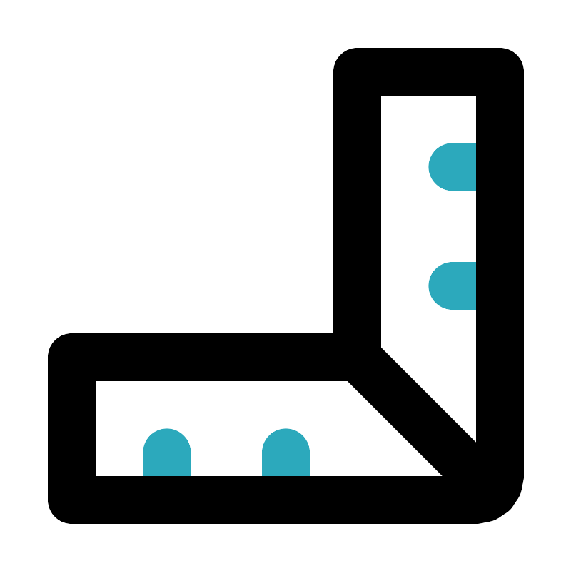 <svg fill="#000000" width="800px" height="800px" viewBox="0 0 24 24" id="ruler-8" data-name="Line Color" xmlns="http://www.w3.org/2000/svg" class="icon line-color"><path id="secondary" d="M19,7h2m-2,5h2M7,21V19m5,2V19" style="fill: none; stroke: rgb(44, 169, 188); stroke-linecap: round; stroke-linejoin: round; stroke-width: 2;"></path><path id="primary" d="M15,15V3h6V20a1,1,0,0,1-1,1H3V15Zm5.71,5.71L15,15" style="fill: none; stroke: rgb(0, 0, 0); stroke-linecap: round; stroke-linejoin: round; stroke-width: 2;"></path></svg>