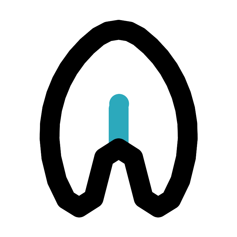<svg fill="#000000" width="800px" height="800px" viewBox="0 0 24 24" id="salmon-2" data-name="Line Color" xmlns="http://www.w3.org/2000/svg" class="icon line-color"><line id="secondary" x1="12" y1="15" x2="12" y2="11" style="fill: none; stroke: rgb(44, 169, 188); stroke-linecap: round; stroke-linejoin: round; stroke-width: 2;"></line><path id="secondary-upstroke" d="M12.05,10.5h0Z" style="fill: none; stroke: rgb(44, 169, 188); stroke-linecap: round; stroke-linejoin: round; stroke-width: 2;"></path><path id="primary" d="M19,14c0,2-1,7-3,7-3,0-1-6-4-6s-1,6-4,6c-2,0-3-5-3-7A12.45,12.45,0,0,1,9.94,3.69a3.42,3.42,0,0,1,4.12,0A12.45,12.45,0,0,1,19,14Z" style="fill: none; stroke: rgb(0, 0, 0); stroke-linecap: round; stroke-linejoin: round; stroke-width: 2;"></path></svg>