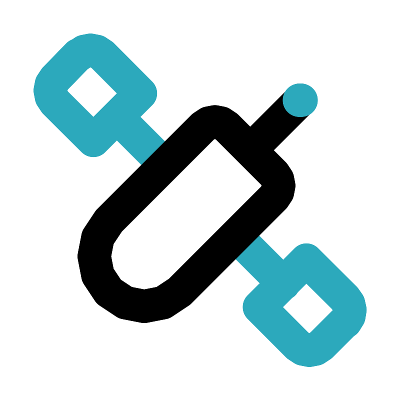 <svg fill="#000000" width="800px" height="800px" viewBox="0 0 24 24" id="satellite" data-name="Line Color" xmlns="http://www.w3.org/2000/svg" class="icon line-color"><path id="secondary" d="M17,17l-2.73-2.73M7,7,9.67,9.67m11,9.62-1.42,1.42a1,1,0,0,1-1.41,0l-2.29-2.3,2.82-2.82,2.3,2.29A1,1,0,0,1,20.71,19.29Zm-16-16L3.29,4.71a1,1,0,0,0,0,1.41l2.3,2.29L8.41,5.59,6.12,3.29A1,1,0,0,0,4.71,3.29Z" style="fill: none; stroke: rgb(44, 169, 188); stroke-linecap: round; stroke-linejoin: round; stroke-width: 2;"></path><line id="primary" x1="15.15" y1="8.85" x2="18" y2="6" style="fill: none; stroke: rgb(0, 0, 0); stroke-linecap: round; stroke-linejoin: round; stroke-width: 2;"></line><path id="primary-2" data-name="primary" d="M5.76,10.24h8a3,3,0,0,1,3,3v0a3,3,0,0,1-3,3h-8a1,1,0,0,1-1-1v-4A1,1,0,0,1,5.76,10.24Z" transform="translate(27.73 15) rotate(135)" style="fill: none; stroke: rgb(0, 0, 0); stroke-linecap: round; stroke-linejoin: round; stroke-width: 2;"></path><line id="secondary-upstroke" x1="17.95" y1="6" x2="18.05" y2="6" style="fill: none; stroke: rgb(44, 169, 188); stroke-linecap: round; stroke-linejoin: round; stroke-width: 2;"></line></svg>