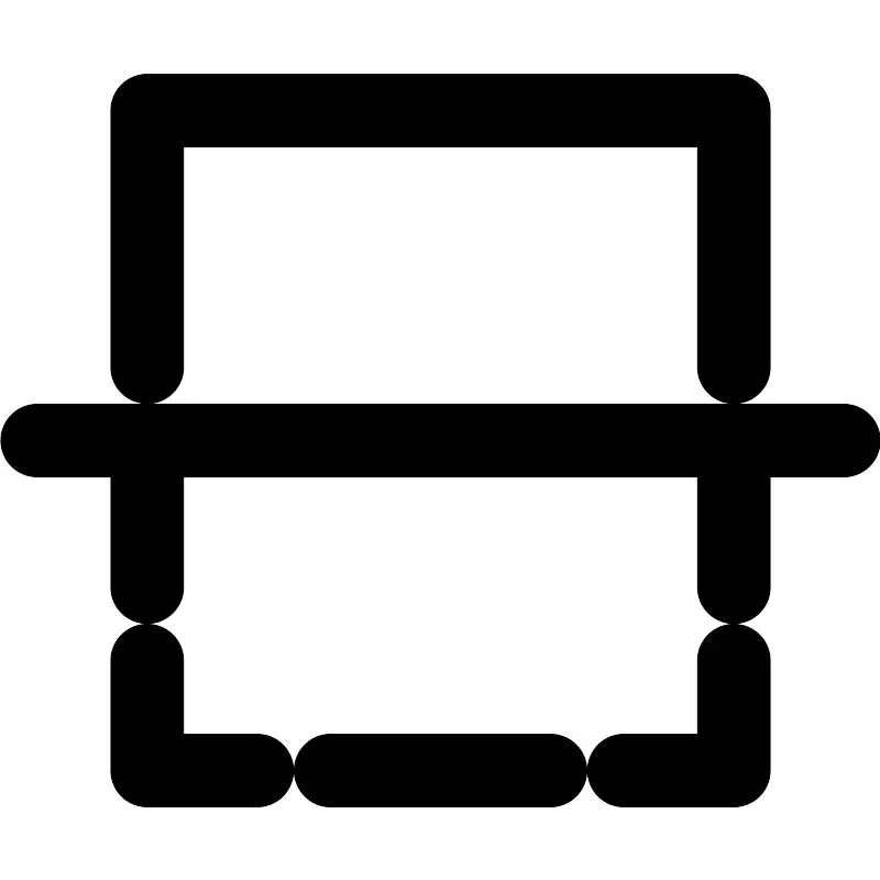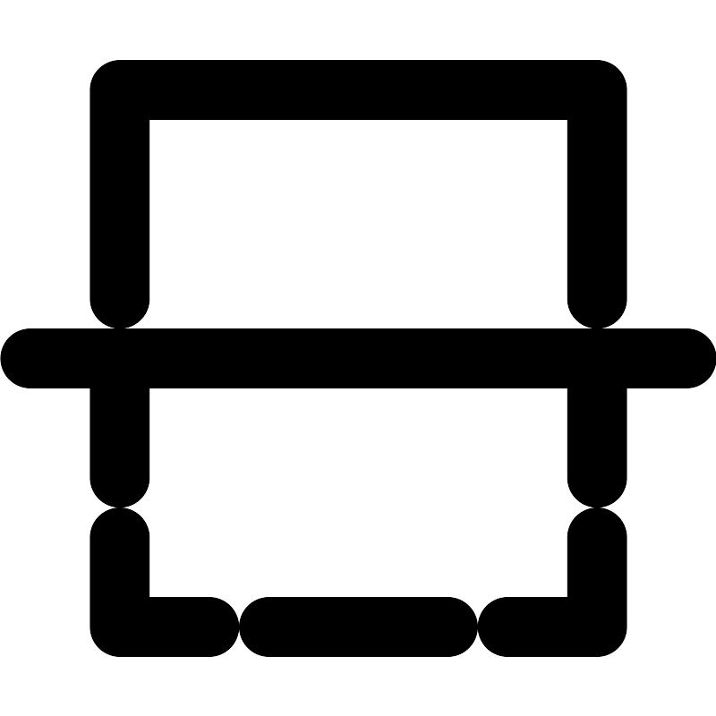 <path fill="none" stroke="#000000" stroke-width="2" d="M20,14 L20,21 L4,21 L4,14 L4,14 M1,12 L23,12 L1,12 Z M4,11 L4,8 L4,11 Z M20,8 L20,11 L20,8 Z M7,3 L4,3 L4,6 M20,6 L20,3 L17,3 M9,3 L15,3 L9,3 Z" transform="matrix(1 0 0 -1 0 24)"/>