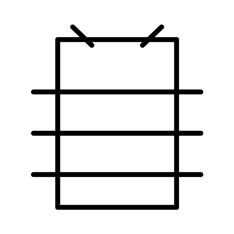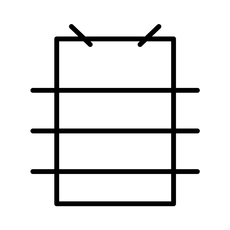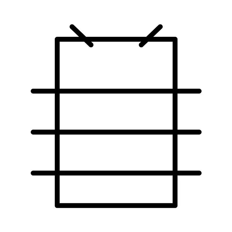 <svg width="800px" height="800px" viewBox="0 0 48 48" xmlns="http://www.w3.org/2000/svg"><defs><style>.a{fill:none;stroke:#000000;stroke-linecap:round;stroke-linejoin:round;}</style></defs><rect class="a" x="11.8059" y="8.0892" width="24.3882" height="34.4108"/><path class="a" d="M6.8363,18.8217H41.1636"/><path class="a" d="M6.8363,35.7765H41.1636"/><path class="a" d="M6.8363,27.2991H41.1636"/><path class="a" d="M14.8753,5.5l3.9255,3.7585"/><path class="a" d="M33.1247,5.5,29.1992,9.2585"/></svg>