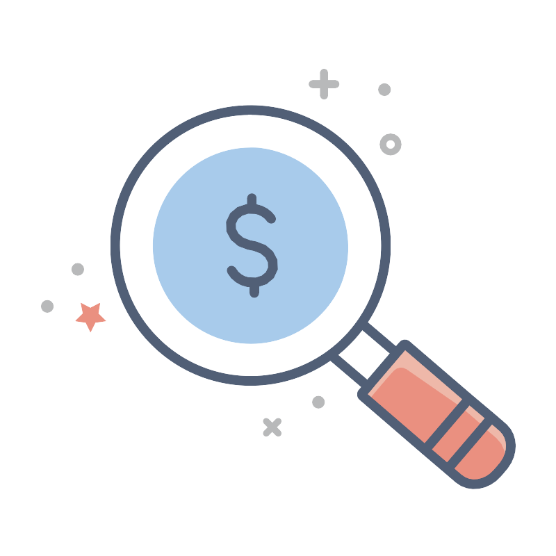 <svg width="800px" height="800px" viewBox="0 0 146 146" xmlns="http://www.w3.org/2000/svg"><title>001-business</title><rect x="0.5" y="0.5" width="145" height="145" fill="none"/><line x1="85" y1="19" x2="85" y2="25" fill="none" stroke="#b8b9ba" stroke-linecap="round" stroke-miterlimit="10" stroke-width="2"/><line x1="88" y1="22" x2="82" y2="22" fill="none" stroke="#b8b9ba" stroke-linecap="round" stroke-miterlimit="10" stroke-width="2"/><circle cx="102.47" cy="37.84" r="2" fill="none" stroke="#b8b9ba" stroke-linecap="round" stroke-miterlimit="10" stroke-width="1.6"/><circle cx="100.87" cy="23.44" r="1.6" fill="#b8b9ba"/><path d="M23.64,80.8L26,79.57a0.08,0.08,0,0,1,.12.08l-0.44,2.59,2,1.95-2.76.4-1.24,2.5-1.24-2.5-2.6-.38a0.08,0.08,0,0,1,0-.14l1.88-1.84L21.17,79.5Z" fill="#ea9080"/><circle cx="20.33" cy="70.64" r="1.6" fill="#b8b9ba"/><circle cx="12.33" cy="80.36" r="1.6" fill="#b8b9ba"/><circle cx="83.53" cy="105.52" r="1.6" fill="#b8b9ba"/><line x1="69.8" y1="110.51" x2="73" y2="113.71" fill="none" stroke="#b8b9ba" stroke-linecap="round" stroke-miterlimit="10" stroke-width="1.6"/><line x1="73" y1="110.51" x2="69.8" y2="113.71" fill="none" stroke="#b8b9ba" stroke-linecap="round" stroke-miterlimit="10" stroke-width="1.6"/><path d="M134.14,117.15a8.53,8.53,0,0,1-2,5.41c0.07-.17.14-0.34,0.19-0.52,2.38-3.12,2.31-7.29-.15-9.67A6.47,6.47,0,0,1,134.14,117.15Z" fill="#eeb8a9"/><path d="M129,109.6l0,0-0.74.83-1.62,2.75,0.72-.85,3,2.58a6.73,6.73,0,0,1,2,7.1c-0.1.14-.21,0.27-0.32,0.41l-1.44,1.69c-2.79,3.26-7.34,3.93-10.18,1.49l-2.94-2.52,0.72-.85L126.93,112l1.32-1.54Z" fill="#ea9080"/><path d="M126.65,113.21l1.62-2.75,0.74-.83,2.9,2.5,0.26,0.24c2.46,2.38,2.53,6.55.15,9.67a6.73,6.73,0,0,0-2-7.1l-3-2.58Z" fill="#eeb8a9"/><polygon points="126.93 111.99 121.5 107.32 120.78 108.16 122.38 105.4 123.1 104.56 128.97 109.6 128.25 110.44 126.93 111.99" fill="#eeb8a9"/><polygon points="112.29 117.21 122.38 105.4 120.78 108.16 121.5 107.32 126.93 111.99 118.17 122.25 117.45 123.1 111.57 118.05 112.29 117.21" fill="#ea9080"/><path d="M106.65,90.43l16.45,14.13-0.72.85-1.32,1.54L106.59,97a2.55,2.55,0,0,0-3.26.42c-1.32,1.34-6.46,7.54-6.61,7.71l-1.6-2,1.41-1.65,1-1.22,5.76-6.74,0.7-.83h0l1.74-2A0.63,0.63,0,0,1,106.65,90.43Z" fill="#eeb8a9"/><path d="M121.06,106.94l1.32-1.54-10.09,11.81-0.72.84L95.13,103.92a0.62,0.62,0,0,1,0-.88l1.6,2c0.14-.17,5.29-6.38,6.61-7.71a2.55,2.55,0,0,1,3.26-.42Z" fill="#ea9080"/><line x1="95.13" y1="85.02" x2="104.04" y2="92.6" fill="none" stroke="#515f76" stroke-miterlimit="10" stroke-width="2.4"/><line x1="96.3" y1="101.2" x2="87.06" y2="93.34" fill="none" stroke="#515f76" stroke-miterlimit="10" stroke-width="2.4"/><path d="M129,109.6l0,0,2.9,2.5,0.26,0.24c2.46,2.38,2.53,6.55.15,9.67-0.1.14-.21,0.27-0.32,0.41l-1.44,1.69c-2.79,3.26-7.34,3.93-10.18,1.49l-2.94-2.52-5.87-5L95.13,103.92a0.62,0.62,0,0,1,0-.88l1.41-1.65,1-1.22,5.76-6.74,0.7-.83h0l1.74-2a0.63,0.63,0,0,1,.87-0.13l16.45,14.13Z" fill="none" stroke="#515f76" stroke-miterlimit="10" stroke-width="2.4"/><line x1="112.29" y1="117.21" x2="122.38" y2="105.4" fill="none" stroke="#515f76" stroke-miterlimit="10" stroke-width="2.4"/><polyline points="118.17 122.25 126.93 111.99 128.25 110.44" fill="none" stroke="#515f76" stroke-miterlimit="10" stroke-width="2.4"/><path d="M86.79,93a35.56,35.56,0,1,1,8-8.18A35.83,35.83,0,0,1,86.79,93Z" fill="#ffffff" stroke="#515f76" stroke-miterlimit="10" stroke-width="2.4"/><path d="M68.42,38.85a26.28,26.28,0,0,1,22.85,26,26,26,0,0,1-1.74,9.39l0,0.06A25.7,25.7,0,1,1,65.8,38.72c0.84,0,1.67,0,2.49.11Z" fill="#a8cbeb"/><path d="M60.71,70.93A6.14,6.14,0,0,0,65,74c3.12,0.61,6.07-1,6.58-3.6S70,65.17,66.87,64.55l-1.6-.32C62.15,63.62,60,61,60.55,58.42s3.46-4.21,6.58-3.6a6.26,6.26,0,0,1,4,2.57" fill="none" stroke="#515f76" stroke-linecap="round" stroke-miterlimit="10" stroke-width="2.4"/><line x1="66.05" y1="51.92" x2="66.05" y2="53.84" fill="none" stroke="#515f76" stroke-linecap="round" stroke-miterlimit="10" stroke-width="2.4"/><line x1="66.69" y1="74.96" x2="66.69" y2="76.88" fill="none" stroke="#515f76" stroke-linecap="round" stroke-miterlimit="10" stroke-width="2.4"/></svg>