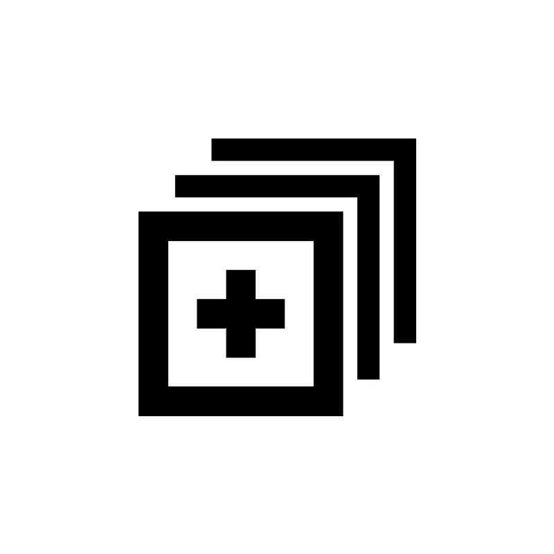 <path fill="#000000" fill-opacity="1" stroke-width="0.2" stroke-linejoin="round" d="M 19,29L 47,29L 47,57L 19,57L 19,29 Z M 43,33L 23,33.0001L 23,53L 43,53L 43,33 Z M 39,41L 39,45L 35,45L 35,49L 31,49L 31,45L 27,45L 27,41L 31,41L 31,37L 35,37L 35,41L 39,41 Z M 24,24L 51.9999,24.0001L 51.9999,52L 48.9999,52.0001L 48.9999,27.0001L 24,27.0001L 24,24 Z M 53.9999,47L 53.9999,22.0001L 29,22L 29,19L 56.9999,19.0001L 57,47L 53.9999,47 Z "/>