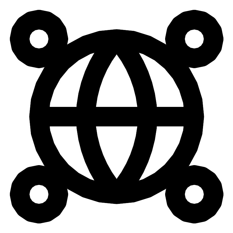 <path d="M20 12C20 16.4183 16.4183 20 12 20M20 12C20 7.58172 16.4183 4 12 4M20 12H4M12 20C7.58172 20 4 16.4183 4 12M12 20C14.001 17.8093 15.1388 14.9664 15.2006 12C15.1388 9.03363 14.001 6.19068 12 4M12 20C9.99898 17.8093 8.86235 14.9664 8.80055 12C8.86235 9.03363 9.99898 6.19068 12 4M4 12C4 7.58172 7.58172 4 12 4M6 20C6 21.1046 5.10457 22 4 22C2.89543 22 2 21.1046 2 20C2 18.8954 2.89543 18 4 18C5.10457 18 6 18.8954 6 20ZM22 20C22 21.1046 21.1046 22 20 22C18.8954 22 18 21.1046 18 20C18 18.8954 18.8954 18 20 18C21.1046 18 22 18.8954 22 20ZM6 4C6 5.10457 5.10457 6 4 6C2.89543 6 2 5.10457 2 4C2 2.89543 2.89543 2 4 2C5.10457 2 6 2.89543 6 4ZM22 4C22 5.10457 21.1046 6 20 6C18.8954 6 18 5.10457 18 4C18 2.89543 18.8954 2 20 2C21.1046 2 22 2.89543 22 4Z" stroke="#000000" stroke-width="2" stroke-linecap="round" stroke-linejoin="round"/>