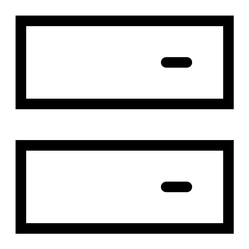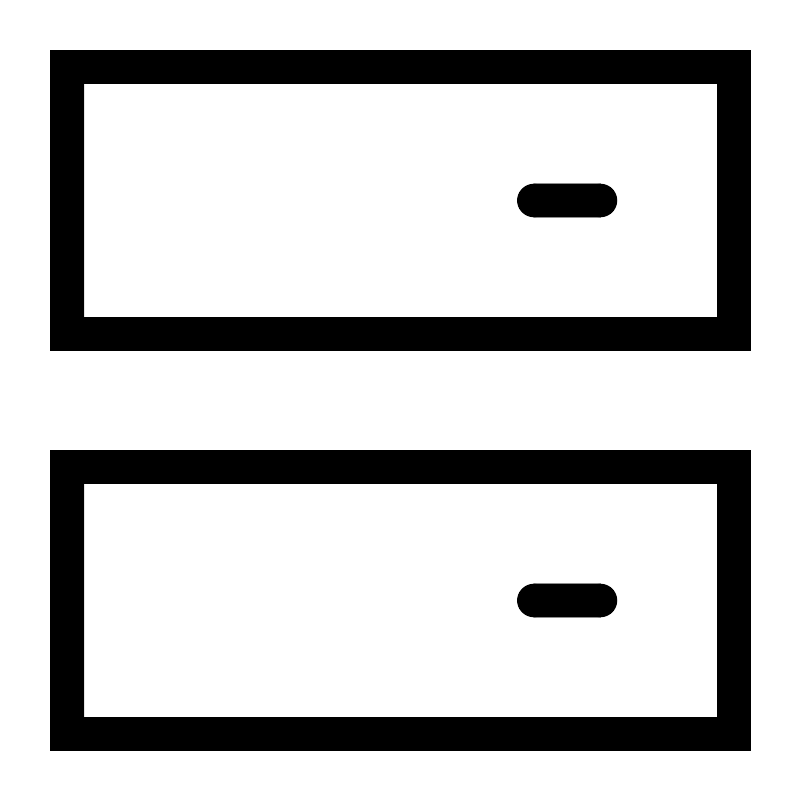 <svg width="800px" height="800px" viewBox="0 0 24 24" xmlns="http://www.w3.org/2000/svg" fill="none" stroke="#000000" stroke-width="1" stroke-linecap="round" stroke-linejoin="miter"><rect x="2" y="14" width="20" height="8" rx="0"></rect><rect x="2" y="2" width="20" height="8" rx="0"></rect><line x1="18" y1="6" x2="16" y2="6"></line><line x1="18" y1="18" x2="16" y2="18"></line></svg>