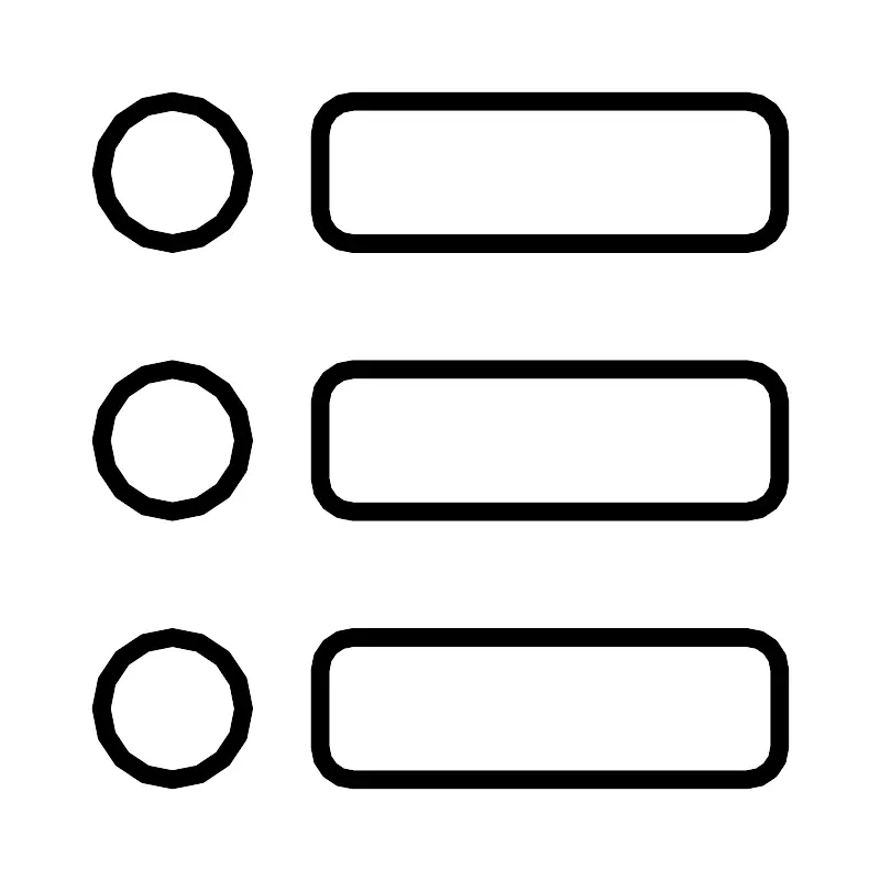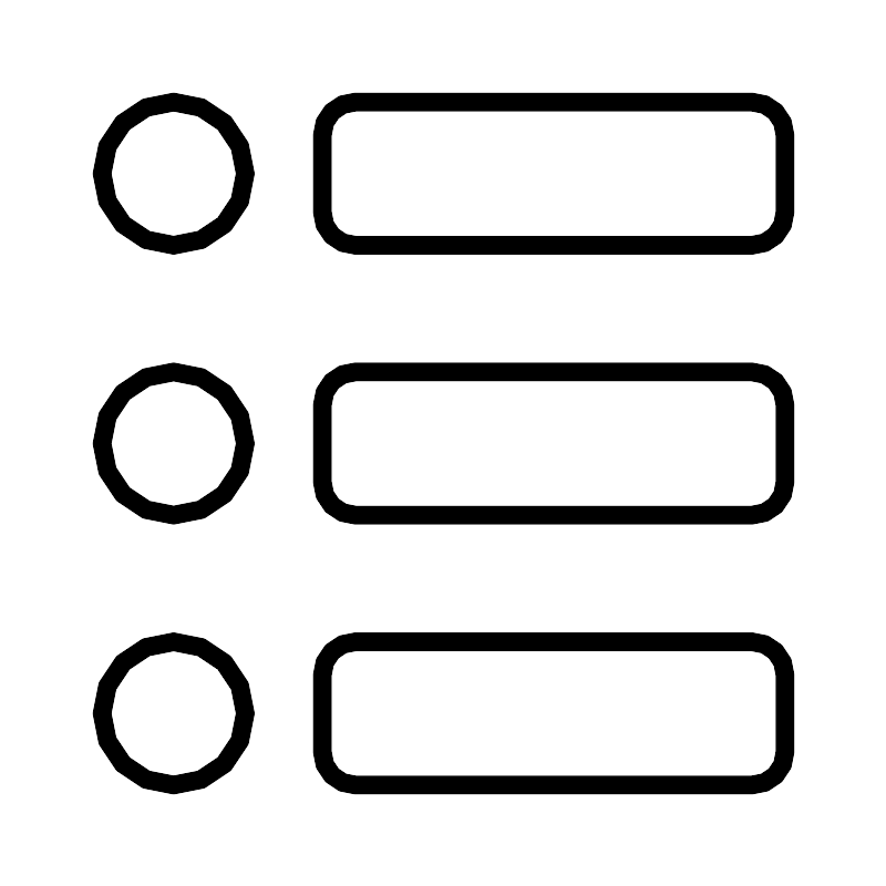 <svg width="800px" height="800px" viewBox="0 0 48 48" id="a" xmlns="http://www.w3.org/2000/svg"><defs><style>.b{fill:none;stroke:#000000;stroke-linecap:round;stroke-linejoin:round;}</style></defs><circle class="b" cx="9.379" cy="9.379" r="3.879"/><circle class="b" cx="9.379" cy="38.621" r="3.879"/><circle class="b" cx="9.379" cy="24" r="3.879"/><rect class="b" x="17.4355" y="5.5" width="25.0645" height="7.7581" rx="1.7903" ry="1.7903"/><rect class="b" x="17.4355" y="34.7419" width="25.0645" height="7.7581" rx="1.7903" ry="1.7903"/><rect class="b" x="17.4355" y="20.121" width="25.0645" height="7.7581" rx="1.7903" ry="1.7903"/></svg>