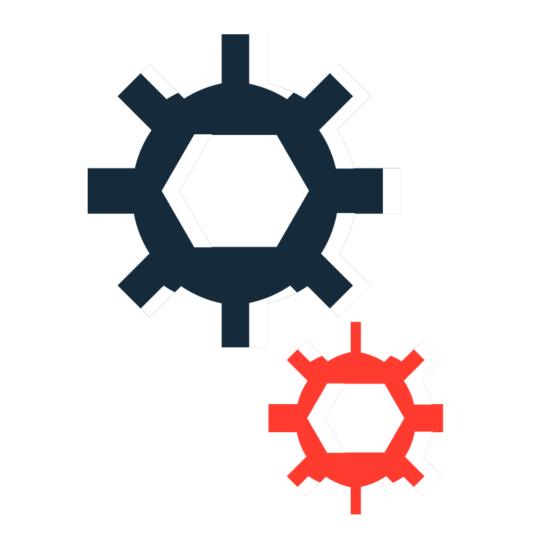 <svg width="800px" height="800px" viewBox="0 0 1024 1024" class="icon" version="1.1" xmlns="http://www.w3.org/2000/svg"><path d="M747.921 398.023v-83.982h-87.944a208.176 208.176 0 0 0-31.232-71.48l63.334-63.334-59.387-59.387-64.304 64.306c-21.214-13.549-45.002-23.424-70.508-28.618V64h-83.985v91.528c-25.506 5.194-49.293 15.07-70.508 28.618l-64.306-64.306-59.385 59.387 63.334 63.334a208.235 208.235 0 0 0-31.233 71.48h-87.943v83.982h86.05a208.03 208.03 0 0 0 29.447 75.159l-59.656 59.654 59.385 59.388 58.685-58.686c22.592 15.466 48.353 26.64 76.128 32.294v82.233h83.985v-82.233c27.776-5.654 53.539-16.827 76.128-32.294l58.684 58.686 59.387-59.388-59.655-59.654a207.999 207.999 0 0 0 29.445-75.159h86.054z m-231.343 63.129H395.195l-60.692-105.12 60.692-105.123h121.383l60.692 105.123-60.692 105.12z" fill="#152B3C" /><path d="M310.806 184.146c6.72-4.292 13.782-8.065 20.992-11.59l-52.716-52.716-16.29 16.291 48.014 48.015zM535.806 184.146l11.59-11.59c-15.548-7.597-32.09-13.479-49.516-17.027V64.001h-32.582v91.528c25.505 5.193 49.294 15.067 70.508 28.617zM395.195 250.908h-32.581l-60.692 105.124 60.692 105.119h32.581l-60.692-105.119zM659.498 179.227l-63.334 63.334a208.174 208.174 0 0 1 31.232 71.478h32.582a208.166 208.166 0 0 0-31.232-71.478l63.334-63.334-59.387-59.387-16.29 16.291 43.095 43.096zM715.339 314.039h32.582v83.985h-32.582zM305.183 533.537l-42.393 42.394 16.29 16.292 46.506-46.509c-7.023-3.718-13.878-7.711-20.403-12.177zM661.87 398.024h-32.583a207.978 207.978 0 0 1-29.446 75.158l59.656 59.654-43.096 43.096 16.29 16.291 59.387-59.387-59.655-59.654a207.99 207.99 0 0 0 29.447-75.158zM541.427 533.537c-22.591 15.468-48.353 26.639-76.129 32.296v82.232h32.582v-82.232c19.757-4.021 38.424-10.95 55.725-20.115l-12.178-12.181z" fill="" /><path d="M860.146 806.494v-51.558h-53.992a127.785 127.785 0 0 0-19.173-43.883l38.882-38.88-36.458-36.46-39.478 39.479c-13.023-8.318-27.627-14.381-43.286-17.569v-56.191h-51.559v56.191c-15.659 3.188-30.263 9.251-43.286 17.569l-39.477-39.479-36.459 36.46 38.882 38.88a127.827 127.827 0 0 0-19.175 43.883h-53.99v51.558h52.828a127.694 127.694 0 0 0 18.078 46.141l-36.624 36.623 36.459 36.46 36.026-36.028c13.87 9.495 29.685 16.354 46.737 19.826V960h51.559v-50.484c17.052-3.472 32.868-10.331 46.737-19.826l36.027 36.028 36.458-36.46-36.624-36.623a127.676 127.676 0 0 0 18.078-46.141h52.83z m-142.025 38.755h-74.519l-37.259-64.535 37.259-64.536h74.519l37.26 64.536-37.26 64.535z" fill="#FF3B30" /><path d="M579.214 675.191c6.777-4.327 13.999-8.006 21.557-11.025l-28.451-28.453-16.291 16.291 23.185 23.187zM717.346 675.191l11.027-11.025c-6.968-2.784-14.219-5.012-21.731-6.542v-56.191H674.06v56.191c15.658 3.189 30.261 9.251 43.286 17.567zM793.282 672.173l-38.882 38.88a127.818 127.818 0 0 1 19.173 43.882h32.581a127.78 127.78 0 0 0-19.173-43.882l38.882-38.88-36.458-36.46-16.291 16.291 20.168 20.169zM643.602 716.179h-32.581l-37.26 64.537 37.26 64.533h32.581l-37.258-64.533zM807.316 806.493h-32.581a127.665 127.665 0 0 1-18.077 46.142l36.624 36.623-20.167 20.167 16.291 16.291 36.458-36.458-36.622-36.623a127.703 127.703 0 0 0 18.074-46.142zM827.563 754.935h32.581v51.557h-32.581zM575.763 889.689l-19.734 19.736 16.291 16.291 24.434-24.432c-7.375-3.237-14.416-7.094-20.991-11.595zM720.797 889.689c-13.869 9.493-29.684 16.355-46.737 19.826V960h32.582v-50.485c8.969-1.827 17.568-4.64 25.748-8.231l-11.593-11.595z" fill="" /></svg>