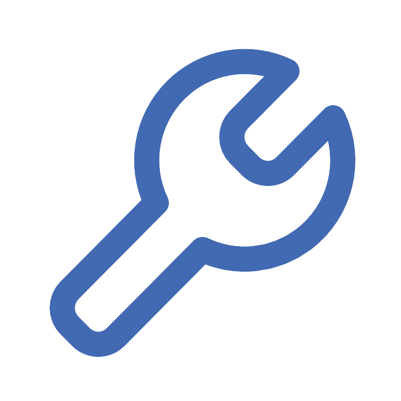 <path d="M27.954 14.394C30.2317 12.09 33.1724 10.5552 36.365 10.0041C39.5576 9.45293 42.8426 9.91301 45.761 11.32L38.099 19.042C37.3647 19.7842 36.9529 20.786 36.9529 21.83C36.9529 22.874 37.3647 23.8759 38.099 24.618L39.945 26.479C40.3069 26.8449 40.7377 27.1354 41.2126 27.3336C41.6874 27.5319 42.1969 27.6339 42.7115 27.6339C43.2261 27.6339 43.7356 27.5319 44.2104 27.3336C44.6853 27.1354 45.1161 26.8449 45.478 26.479L53.14 18.757C54.6974 22.0413 55.0787 25.7609 54.2201 29.2928C53.3615 32.8247 51.3152 35.9542 48.424 38.157C46.1421 39.8846 43.4283 40.95 40.5806 41.2365C37.7329 41.523 34.8613 41.0194 32.281 39.781L18.418 53.751C18.0562 54.1169 17.6255 54.4073 17.1507 54.6056C16.6759 54.8038 16.1665 54.9058 15.652 54.9058C15.1375 54.9058 14.6281 54.8038 14.1533 54.6056C13.6785 54.4073 13.2478 54.1169 12.886 53.751L11.04 51.89C10.3052 51.1482 9.89305 50.1462 9.89305 49.102C9.89305 48.0579 10.3052 47.0559 11.04 46.3141L24.905 32.3401C23.5083 29.3978 23.0517 26.0968 23.5972 22.8858C24.1428 19.6749 25.664 16.7099 27.954 14.394V14.394Z" stroke="#426AB2" stroke-width="4" stroke-linecap="round" stroke-linejoin="round"/>