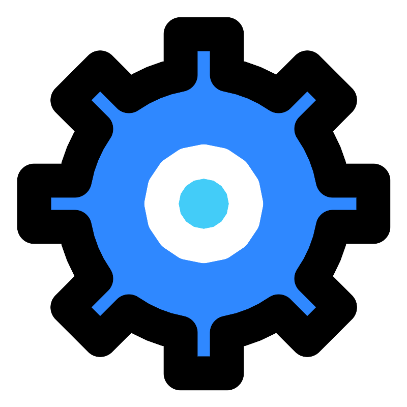 <path d="M36.686 15.171C37.9364 16.9643 38.8163 19.0352 39.2147 21.2727H44V26.7273H39.2147C38.8163 28.9648 37.9364 31.0357 36.686 32.829L40.0706 36.2137L36.2137 40.0706L32.829 36.686C31.0357 37.9364 28.9648 38.8163 26.7273 39.2147V44H21.2727V39.2147C19.0352 38.8163 16.9643 37.9364 15.171 36.686L11.7863 40.0706L7.92939 36.2137L11.314 32.829C10.0636 31.0357 9.18372 28.9648 8.78533 26.7273H4V21.2727H8.78533C9.18372 19.0352 10.0636 16.9643 11.314 15.171L7.92939 11.7863L11.7863 7.92939L15.171 11.314C16.9643 10.0636 19.0352 9.18372 21.2727 8.78533V4H26.7273V8.78533C28.9648 9.18372 31.0357 10.0636 32.829 11.314L36.2137 7.92939L40.0706 11.7863L36.686 15.171Z" fill="#2F88FF" stroke="#000000" stroke-width="4" stroke-linejoin="round"/>