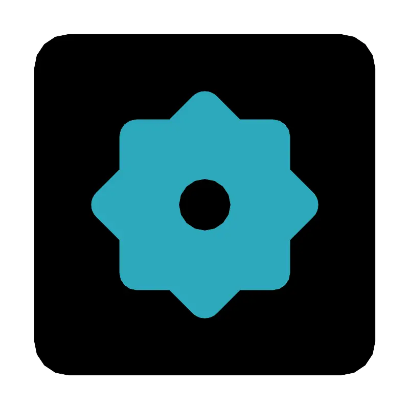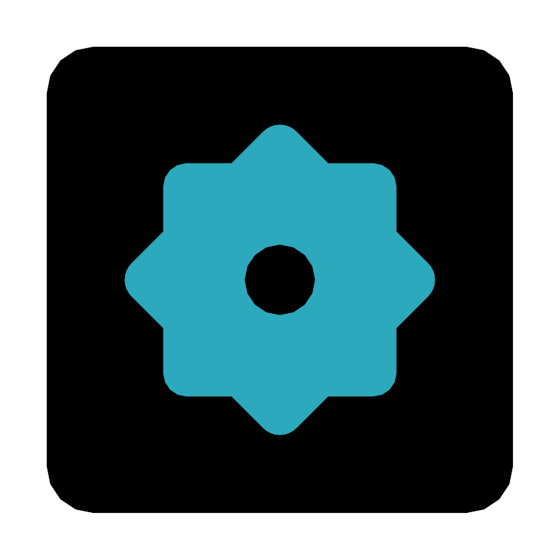 <svg fill="#000000" width="800px" height="800px" viewBox="0 0 24 24" id="settings-alt-3" data-name="Flat Color" xmlns="http://www.w3.org/2000/svg" class="icon flat-color"><rect id="primary" x="2" y="2" width="20" height="20" rx="2" style="fill: rgb(0, 0, 0);"></rect><path id="secondary" d="M18.36,11.29,17,9.93V8a1,1,0,0,0-1-1H14.07L12.71,5.64a1,1,0,0,0-1.42,0L9.93,7H8A1,1,0,0,0,7,8V9.93L5.64,11.29a1,1,0,0,0,0,1.42L7,14.07V16a1,1,0,0,0,1,1H9.93l1.36,1.36a1,1,0,0,0,1.42,0L14.07,17H16a1,1,0,0,0,1-1V14.07l1.36-1.36A1,1,0,0,0,18.36,11.29Z" style="fill: rgb(44, 169, 188);"></path><circle id="primary-2" data-name="primary" cx="12" cy="12" r="1.5" style="fill: rgb(0, 0, 0);"></circle></svg>