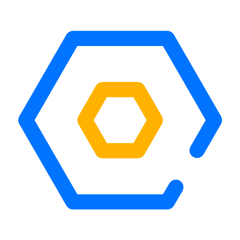 <svg width="800px" height="800px" viewBox="0 0 64 64" data-name="Layer 1" id="Layer_1" xmlns="http://www.w3.org/2000/svg"><defs><style>.cls-1{fill:#0074ff;}.cls-2{fill:#ffb300;}</style></defs><title/><path class="cls-1" d="M44.58,55.79H19.42a2,2,0,0,1-1.73-1L5.11,33a2,2,0,0,1,0-2L17.69,9.21a2,2,0,0,1,1.73-1H44.58a2,2,0,0,1,1.73,1L58.89,31a2,2,0,0,1,0,2l-4.66,8.08a2,2,0,0,1-3.47-2L54.85,32,43.43,12.21H20.57L9.15,32,20.57,51.79H43.43l1.76-3a2,2,0,0,1,3.46,2l-2.34,4A2,2,0,0,1,44.58,55.79Z"/><path class="cls-2" d="M36.7,42.15H27.3a2,2,0,0,1-1.74-1L20.86,33a2,2,0,0,1,0-2l4.7-8.15a2,2,0,0,1,1.74-1h9.4a2,2,0,0,1,1.74,1L43.14,31a2,2,0,0,1,0,2l-4.7,8.15A2,2,0,0,1,36.7,42.15Zm-8.25-4h7.1L39.1,32l-3.55-6.15h-7.1L24.9,32Z"/></svg>