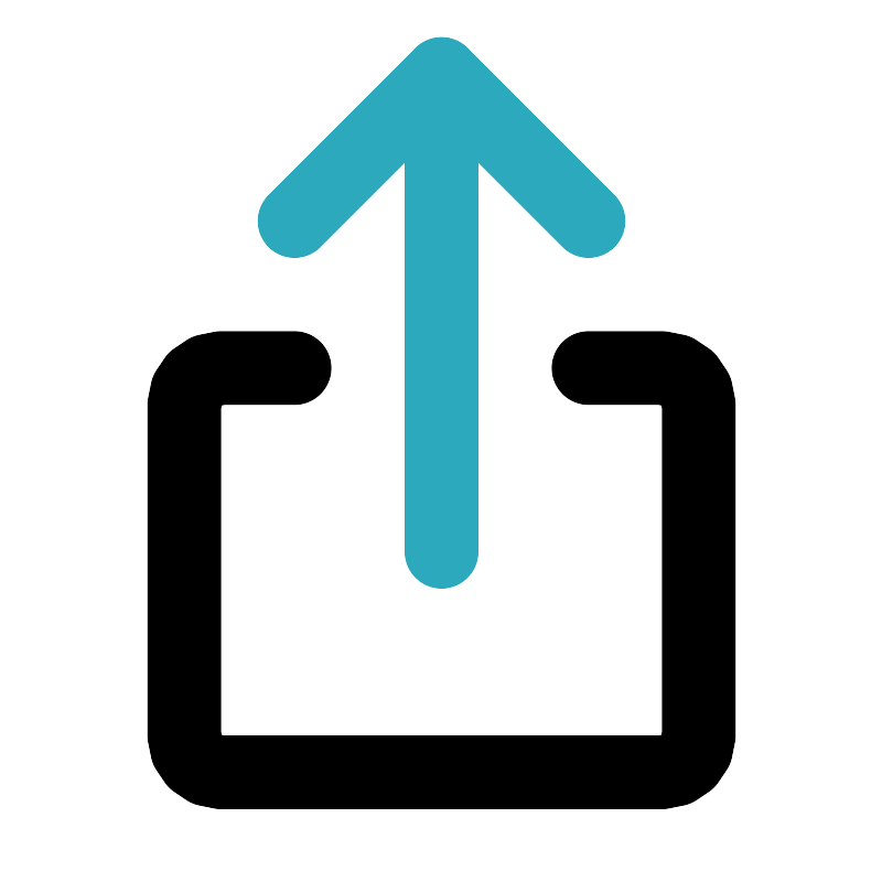 <svg fill="#000000" width="800px" height="800px" viewBox="0 0 24 24" id="share" data-name="Line Color" xmlns="http://www.w3.org/2000/svg" class="icon line-color"><polyline id="secondary" points="8 6 12 2 16 6" style="fill: none; stroke: rgb(44, 169, 188); stroke-linecap: round; stroke-linejoin: round; stroke-width: 2;"></polyline><line id="secondary-2" data-name="secondary" x1="12" y1="2" x2="12" y2="15" style="fill: none; stroke: rgb(44, 169, 188); stroke-linecap: round; stroke-linejoin: round; stroke-width: 2;"></line><path id="primary" d="M16,10h2a1,1,0,0,1,1,1v9a1,1,0,0,1-1,1H6a1,1,0,0,1-1-1V11a1,1,0,0,1,1-1H8" style="fill: none; stroke: rgb(0, 0, 0); stroke-linecap: round; stroke-linejoin: round; stroke-width: 2;"></path></svg>