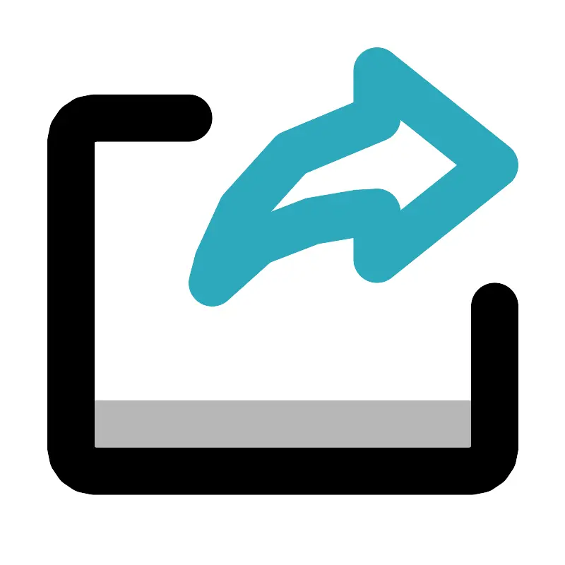 <svg width="800px" height="800px" viewBox="0 0 24 24" id="share-alt" xmlns="http://www.w3.org/2000/svg" class="icon multi-color"><rect id="tertiary-fill" x="3" y="17" width="18" height="3" style="fill: #b7b7b7; stroke-width: 2;"></rect><path id="primary-stroke" d="M21,13v6a1,1,0,0,1-1,1H4a1,1,0,0,1-1-1V6A1,1,0,0,1,4,5H8" style="fill: none; stroke: rgb(0, 0, 0); stroke-linecap: round; stroke-linejoin: round; stroke-width: 2;"></path><path id="secondary-stroke" d="M16,3l5,4-5,4V9s-5,0-7,3c0,0,1-6,7-7Z" style="fill: none; stroke: rgb(44, 169, 188); stroke-linecap: round; stroke-linejoin: round; stroke-width: 2;"></path></svg>