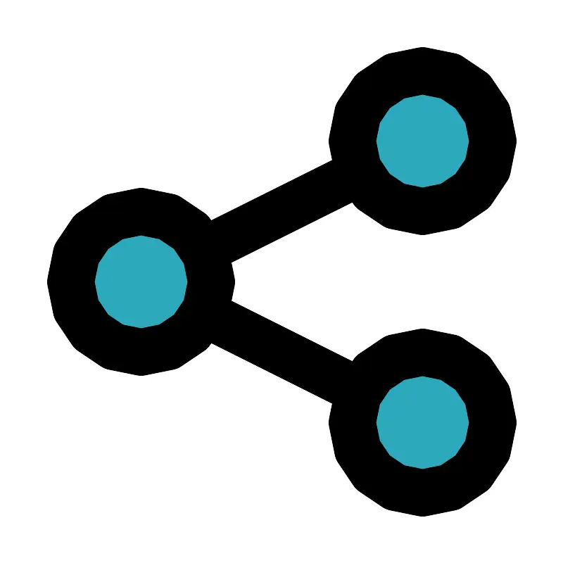 <svg fill="#000000" width="800px" height="800px" viewBox="0 0 24 24" id="share-alt-2" data-name="Flat Line" xmlns="http://www.w3.org/2000/svg" class="icon flat-line"><path id="secondary" d="M6,9a3,3,0,1,1-3,3A3,3,0,0,1,6,9Zm9,9a3,3,0,1,0,3-3A3,3,0,0,0,15,18Zm3-9a3,3,0,1,0-3-3A3,3,0,0,0,18,9Z" style="fill: rgb(44, 169, 188); stroke-width: 2;"></path><path id="primary" d="M8.68,13.34l6.62,3.31m-6.62-6L15.3,7.35M6,9a3,3,0,1,1-3,3A3,3,0,0,1,6,9Zm9,9a3,3,0,1,0,3-3A3,3,0,0,0,15,18Zm3-9a3,3,0,1,0-3-3A3,3,0,0,0,18,9Z" style="fill: none; stroke: rgb(0, 0, 0); stroke-linecap: round; stroke-linejoin: round; stroke-width: 2;"></path></svg>