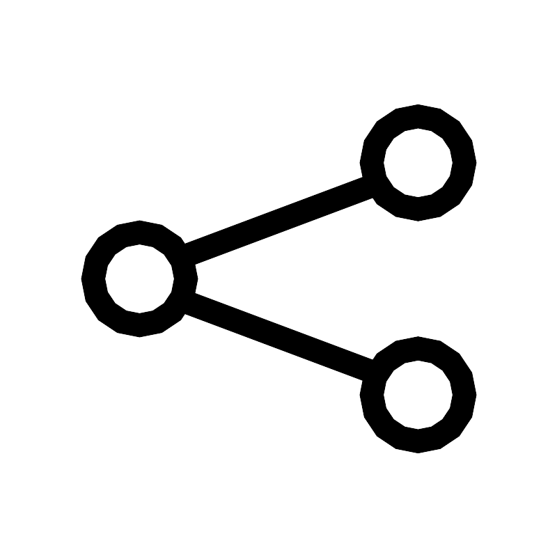 <svg width="800px" height="800px" viewBox="0 0 24 24" role="img" xmlns="http://www.w3.org/2000/svg" aria-labelledby="shareAndroidIconTitle" stroke="#000000" stroke-width="1" stroke-linecap="square" stroke-linejoin="miter" fill="none" color="#000000"> <title id="shareAndroidIconTitle">Share</title> <path d="M16 8L8 11 16 8zM16 16L8 13 16 16z"/> <circle cx="6" cy="12" r="2"/> <circle cx="18" cy="7" r="2"/> <circle cx="18" cy="17" r="2"/> </svg>