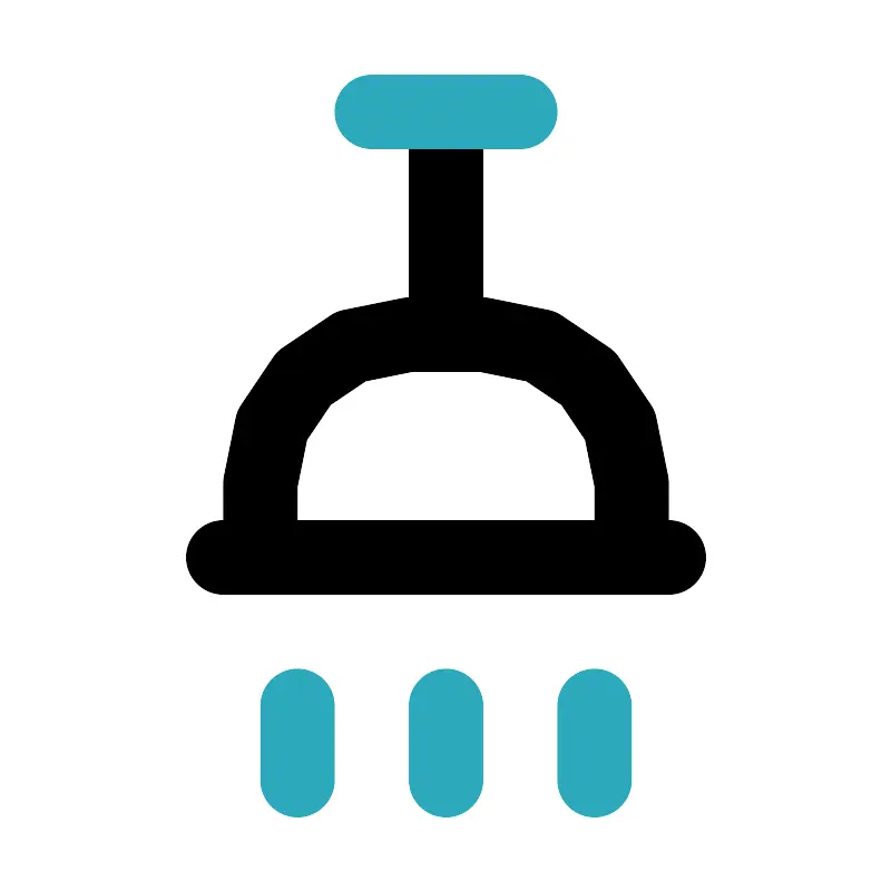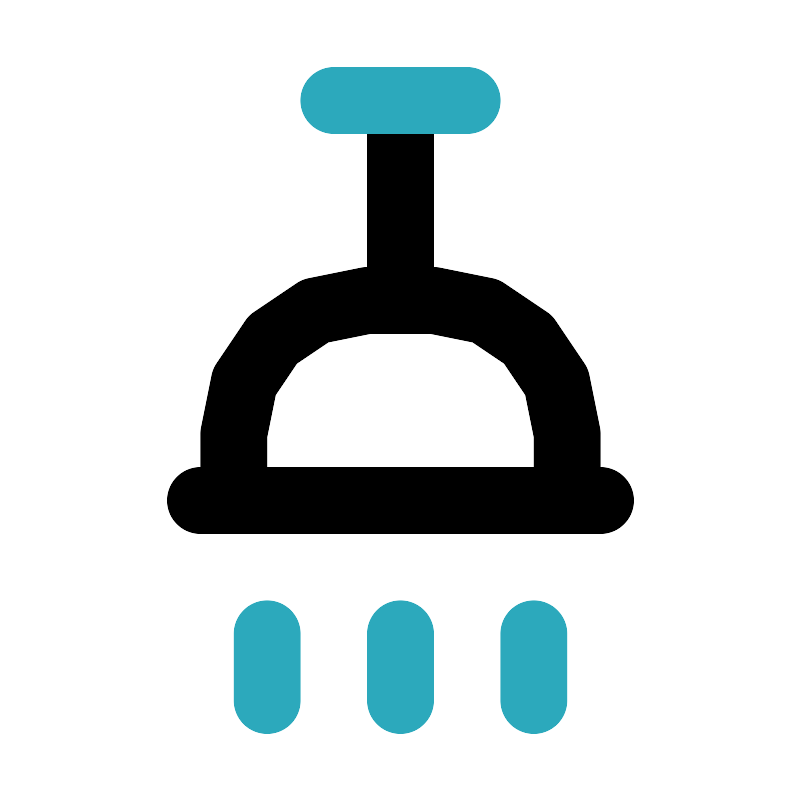 <svg fill="#000000" width="800px" height="800px" viewBox="0 0 24 24" id="shower-3" data-name="Line Color" xmlns="http://www.w3.org/2000/svg" class="icon line-color"><path id="primary" d="M13,9H11a4,4,0,0,0-4,4v2H17V13A4,4,0,0,0,13,9ZM6,15H18M12,9V3" style="fill: none; stroke: rgb(0, 0, 0); stroke-linecap: round; stroke-linejoin: round; stroke-width: 2;"></path><path id="secondary" d="M12,19v2M8,19v2m8-2v2M10,3h4" style="fill: none; stroke: rgb(44, 169, 188); stroke-linecap: round; stroke-linejoin: round; stroke-width: 2;"></path></svg>