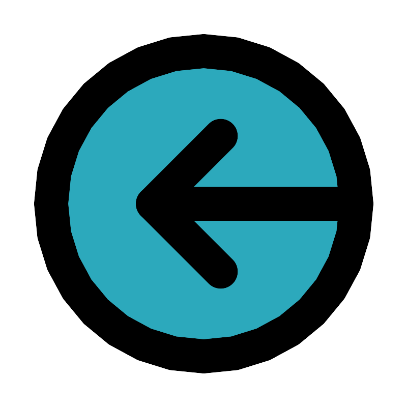 <svg fill="#000000" width="800px" height="800px" viewBox="0 0 24 24" id="sign-out-alt" data-name="Flat Line" xmlns="http://www.w3.org/2000/svg" class="icon flat-line"><circle id="secondary" cx="12" cy="12" r="9" style="fill: rgb(44, 169, 188); stroke-width: 2;"></circle><polyline id="primary" points="13 8 9 12 13 16" style="fill: none; stroke: rgb(0, 0, 0); stroke-linecap: round; stroke-linejoin: round; stroke-width: 2;"></polyline><path id="primary-2" data-name="primary" d="M21,12H9M3,12a9,9,0,1,0,9-9A9,9,0,0,0,3,12Z" style="fill: none; stroke: rgb(0, 0, 0); stroke-linecap: round; stroke-linejoin: round; stroke-width: 2;"></path></svg>