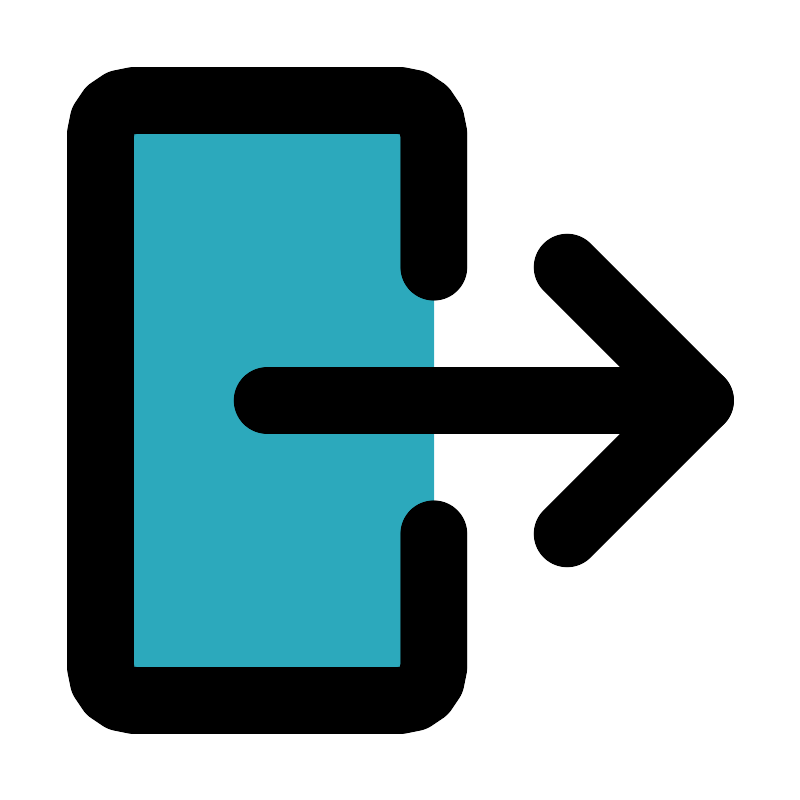 <svg fill="#000000" width="800px" height="800px" viewBox="0 0 24 24" id="sign-out-alt-2" data-name="Flat Line" xmlns="http://www.w3.org/2000/svg" class="icon flat-line"><rect id="secondary" x="3" y="3" width="10" height="18" rx="1" style="fill: rgb(44, 169, 188); stroke-width: 2;"></rect><line id="primary" x1="8" y1="12" x2="21" y2="12" style="fill: none; stroke: rgb(0, 0, 0); stroke-linecap: round; stroke-linejoin: round; stroke-width: 2;"></line><polyline id="primary-2" data-name="primary" points="17 16 21 12 17 8" style="fill: none; stroke: rgb(0, 0, 0); stroke-linecap: round; stroke-linejoin: round; stroke-width: 2;"></polyline><path id="primary-3" data-name="primary" d="M13,8V4a1,1,0,0,0-1-1H4A1,1,0,0,0,3,4V20a1,1,0,0,0,1,1h8a1,1,0,0,0,1-1V16" style="fill: none; stroke: rgb(0, 0, 0); stroke-linecap: round; stroke-linejoin: round; stroke-width: 2;"></path></svg>