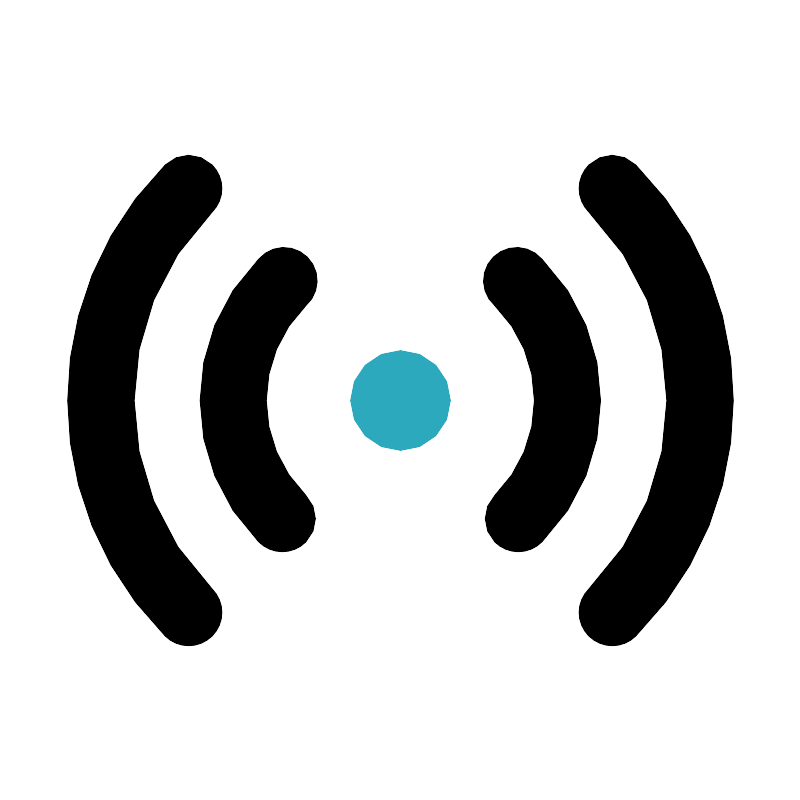 <svg fill="#000000" width="800px" height="800px" viewBox="0 0 24 24" id="signal-2" data-name="Flat Color" xmlns="http://www.w3.org/2000/svg" class="icon flat-color"><path id="primary" d="M5.64,19.36a1,1,0,0,1-.7-.29,10,10,0,0,1,0-14.14,1,1,0,0,1,1.41,0,1,1,0,0,1,0,1.42,8,8,0,0,0,0,11.3,1,1,0,0,1,0,1.42A1,1,0,0,1,5.64,19.36Zm3.52-3.11a1,1,0,0,0,0-1.41,4,4,0,0,1,0-5.68,1,1,0,1,0-1.42-1.4,6,6,0,0,0,0,8.48,1,1,0,0,0,.71.3A1,1,0,0,0,9.16,16.25Zm9.9,2.82a10,10,0,0,0,0-14.14,1,1,0,0,0-1.41,0,1,1,0,0,0,0,1.42,8,8,0,0,1,0,11.3,1,1,0,0,0,0,1.42,1,1,0,0,0,.71.29A1,1,0,0,0,19.06,19.07Zm-2.81-2.83a6,6,0,0,0,0-8.48,1,1,0,1,0-1.42,1.4,4,4,0,0,1,0,5.68,1,1,0,0,0,0,1.41,1,1,0,0,0,.7.29A1,1,0,0,0,16.25,16.24Z" style="fill: rgb(0, 0, 0);"></path><circle id="secondary" cx="12" cy="12" r="1.5" style="fill: rgb(44, 169, 188);"></circle></svg>