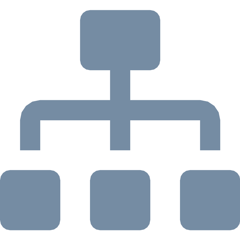 <svg width="800px" height="800px" viewBox="0 -1 24 24" id="meteor-icon-kit__solid-sitemap" fill="none" xmlns="http://www.w3.org/2000/svg"><path d="M8 1C8 0.44772 8.44772 0 9 0H15C15.5523 0 16 0.44772 16 1V5C16 5.55228 15.5523 6 15 6H13V9H20C21.1046 9 22 9.8954 22 11V14H20V11H13V14H11V11H4V14H2V11C2 9.8954 2.89543 9 4 9H11V6H9C8.44772 6 8 5.55228 8 5V1z" fill="#758CA3"/><path d="M0 17C0 16.4477 0.447715 16 1 16H5C5.55228 16 6 16.4477 6 17V21C6 21.5523 5.55228 22 5 22H1C0.447715 22 0 21.5523 0 21V17z" fill="#758CA3"/><path d="M10 16C9.44772 16 9 16.4477 9 17V21C9 21.5523 9.44772 22 10 22H14C14.5523 22 15 21.5523 15 21V17C15 16.4477 14.5523 16 14 16H10z" fill="#758CA3"/><path d="M19 16C18.4477 16 18 16.4477 18 17V21C18 21.5523 18.4477 22 19 22H23C23.5523 22 24 21.5523 24 21V17C24 16.4477 23.5523 16 23 16H19z" fill="#758CA3"/></svg>