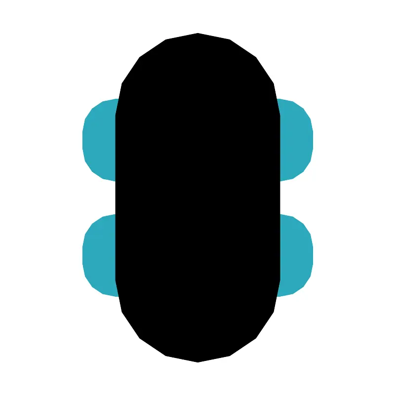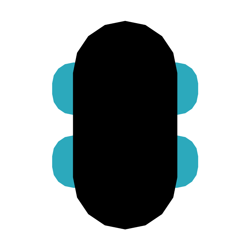<svg fill="#000000" width="800px" height="800px" viewBox="0 0 24 24" id="skateboard" data-name="Flat Color" xmlns="http://www.w3.org/2000/svg" class="icon flat-color"><path id="secondary" d="M17,18H16a1,1,0,0,1-1-1V14a1,1,0,0,1,1-1h1a2,2,0,0,1,2,2v1A2,2,0,0,1,17,18Zm0-2h0ZM8,18H7a2,2,0,0,1-2-2V15a2,2,0,0,1,2-2H8a1,1,0,0,1,1,1v3A1,1,0,0,1,8,18Zm9-7H16a1,1,0,0,1-1-1V7a1,1,0,0,1,1-1h1a2,2,0,0,1,2,2V9A2,2,0,0,1,17,11Zm0-2h0ZM8,11H7A2,2,0,0,1,5,9V8A2,2,0,0,1,7,6H8A1,1,0,0,1,9,7v3A1,1,0,0,1,8,11Z" style="fill: rgb(44, 169, 188);"></path><path id="primary" d="M12,2A5,5,0,0,0,7,7V17a5,5,0,0,0,10,0V7A5,5,0,0,0,12,2Z" style="fill: rgb(0, 0, 0);"></path></svg>