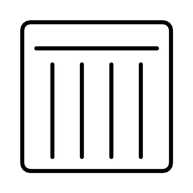 <svg width="800px" height="800px" viewBox="0 0 48 48" xmlns="http://www.w3.org/2000/svg"><defs><style>.a{fill:none;stroke:#000000;stroke-linecap:round;stroke-linejoin:round;}</style></defs><line class="a" x1="39" y1="12" x2="9" y2="12"/><line class="a" x1="13" y1="39" x2="13" y2="16"/><line class="a" x1="20.33" y1="39" x2="20.33" y2="16"/><line class="a" x1="27.67" y1="39" x2="27.67" y2="16"/><line class="a" x1="35" y1="39" x2="35" y2="16"/><path class="a" d="M40.5,5.5H7.5a2,2,0,0,0-2,2v33a2,2,0,0,0,2,2h33a2,2,0,0,0,2-2V7.5A2,2,0,0,0,40.5,5.5Z"/></svg>