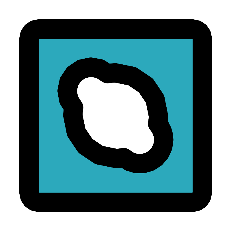 <svg fill="#000000" width="800px" height="800px" viewBox="0 0 24 24" id="skype-square" data-name="Flat Line" xmlns="http://www.w3.org/2000/svg" class="icon flat-line"><path id="secondary" d="M20,3H4A1,1,0,0,0,3,4V20a1,1,0,0,0,1,1H20a1,1,0,0,0,1-1V4A1,1,0,0,0,20,3ZM14.5,17a2.52,2.52,0,0,1-1.66-.64,4.6,4.6,0,0,1-.84.08A4.44,4.44,0,0,1,7.56,12a4.6,4.6,0,0,1,.08-.84,2.49,2.49,0,0,1,3.52-3.52A4.6,4.6,0,0,1,12,7.56,4.44,4.44,0,0,1,16.44,12a4.6,4.6,0,0,1-.08.84A2.49,2.49,0,0,1,14.5,17Z" style="fill: rgb(44, 169, 188); stroke-width: 2;"></path><path id="primary" d="M17,14.5a2.49,2.49,0,0,1-4.16,1.86,4.6,4.6,0,0,1-.84.08A4.44,4.44,0,0,1,7.56,12a4.6,4.6,0,0,1,.08-.84,2.49,2.49,0,0,1,3.52-3.52A4.6,4.6,0,0,1,12,7.56,4.44,4.44,0,0,1,16.44,12a4.6,4.6,0,0,1-.08.84A2.52,2.52,0,0,1,17,14.5ZM21,20V4a1,1,0,0,0-1-1H4A1,1,0,0,0,3,4V20a1,1,0,0,0,1,1H20A1,1,0,0,0,21,20Z" style="fill: none; stroke: rgb(0, 0, 0); stroke-linecap: round; stroke-linejoin: round; stroke-width: 2;"></path></svg>